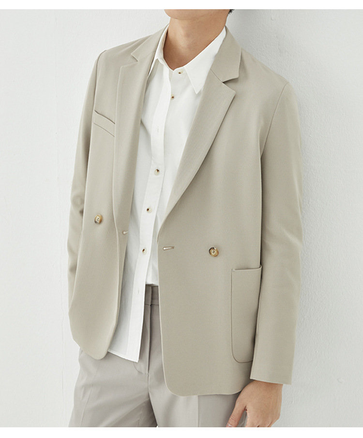 前売りの新商品は花の紗の綾をまねて、平反りの襟のカジュアルなスーツのコートの男になります。