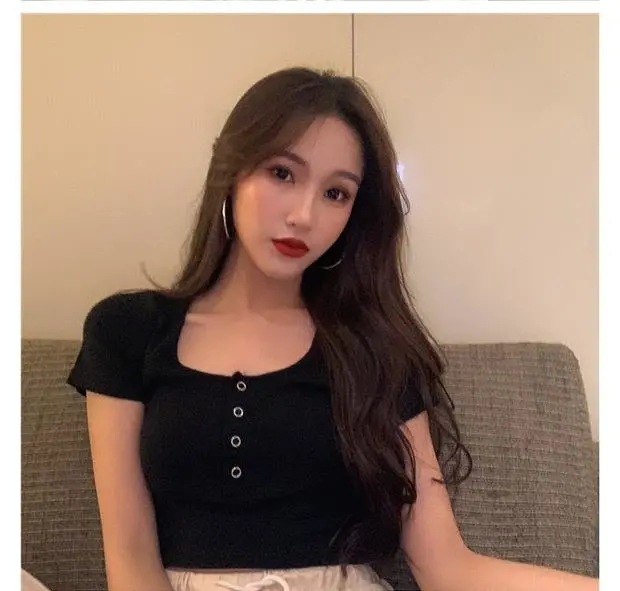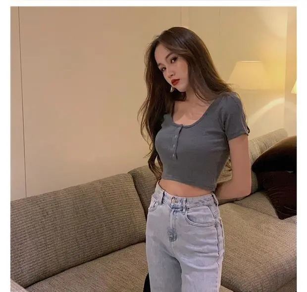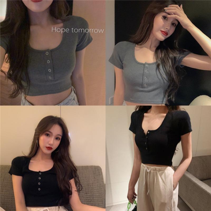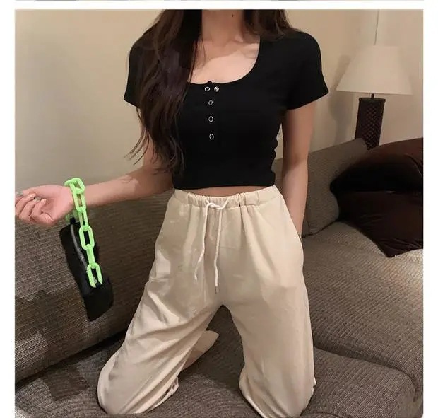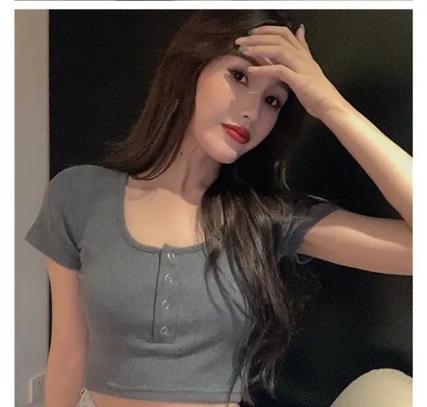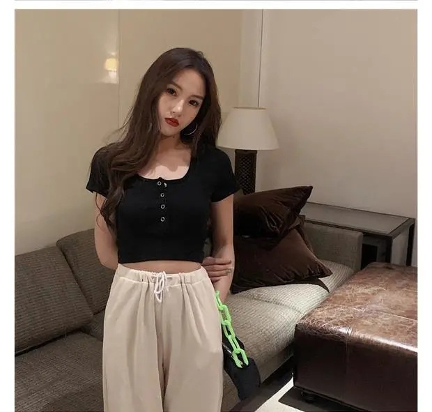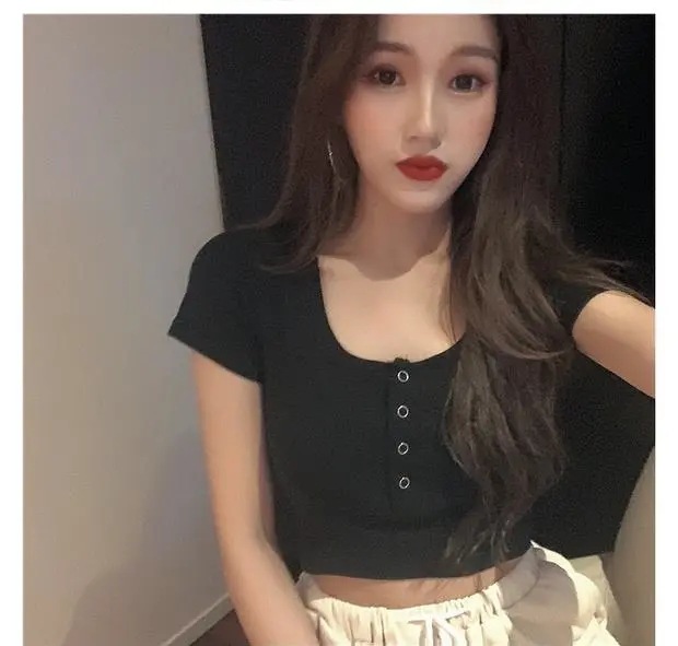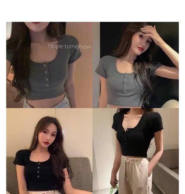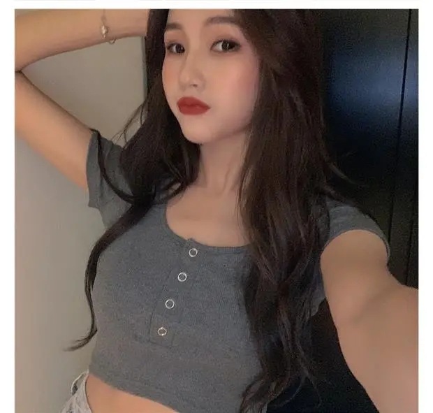 百合は腰の短いタイトギャル半袖tシャツ女装2025夏のレトロでユニークな臍上着ins潮を収めた