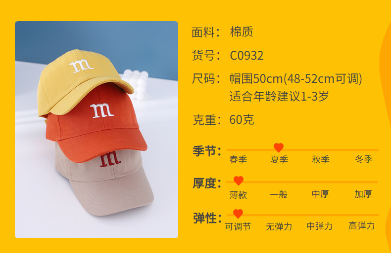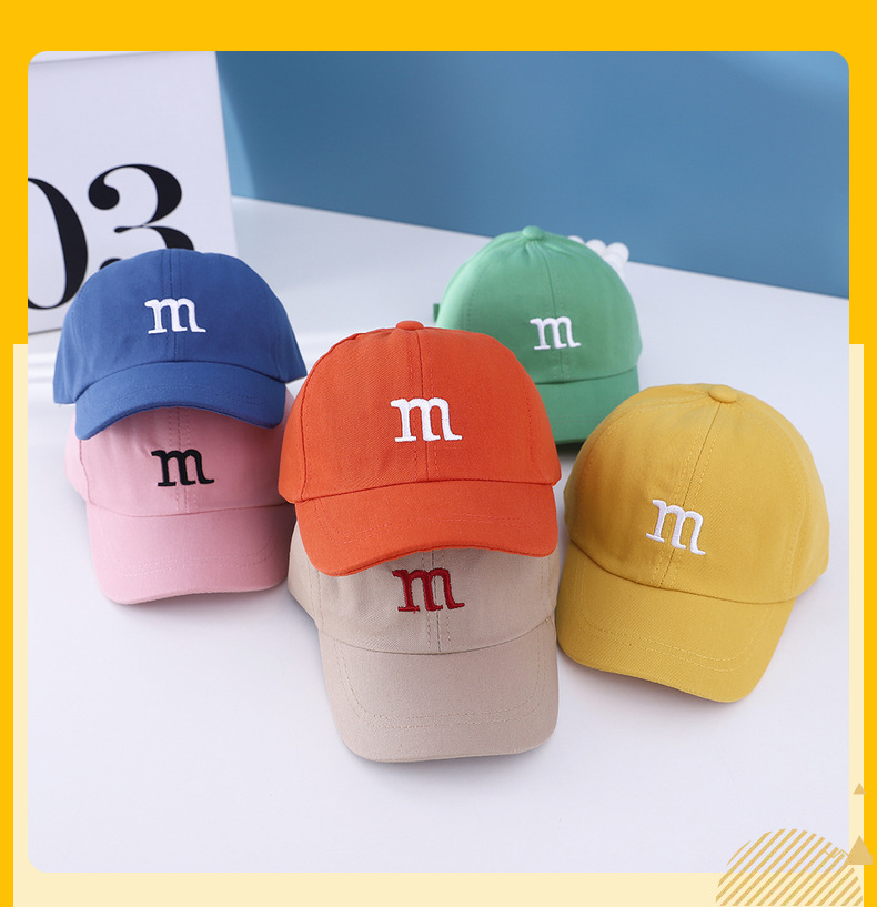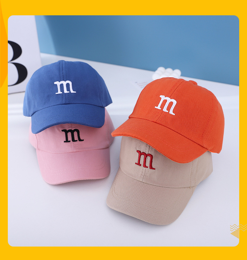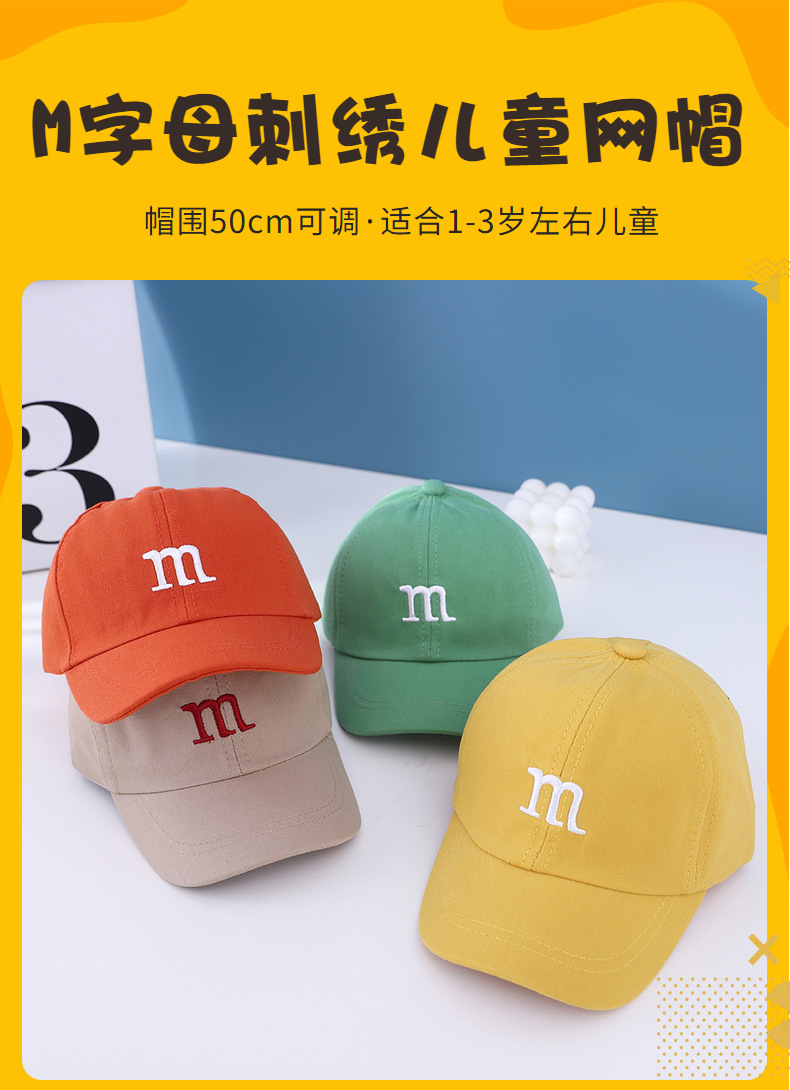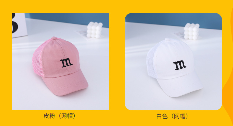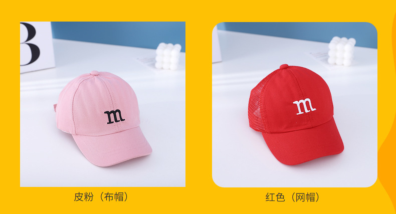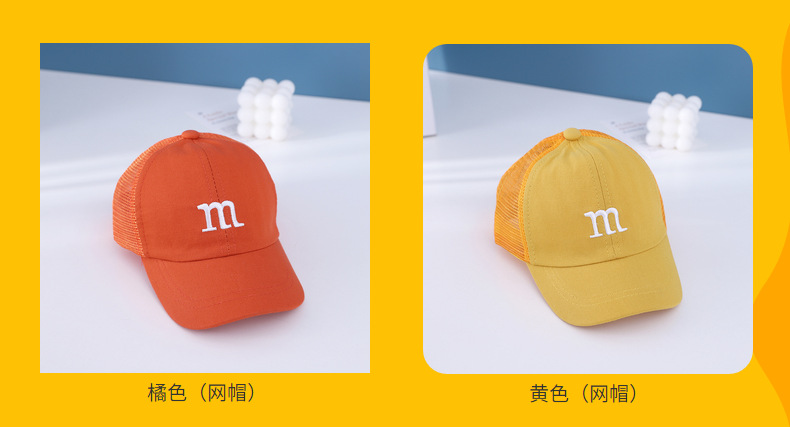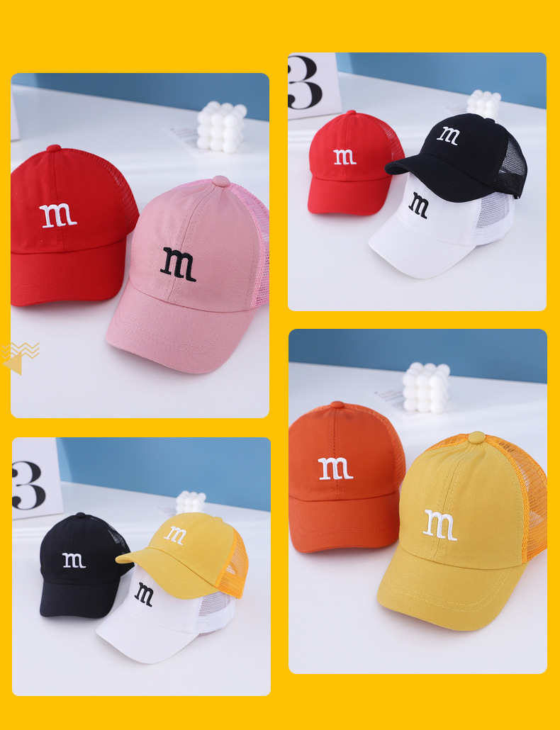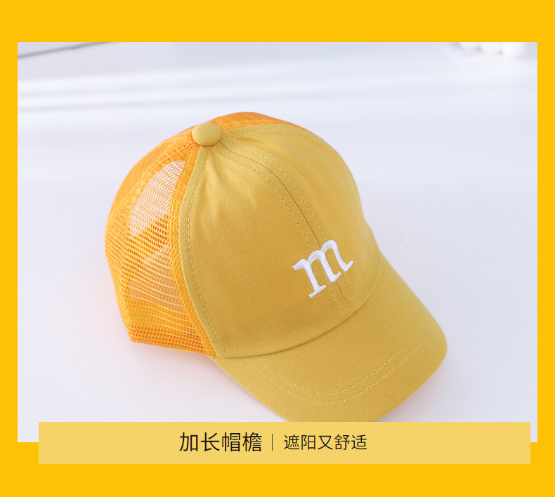 Mアルファベット子供ネット帽子夏新型子供帽子夏日焼け止め子供子供帽子通気野球帽1-3歳