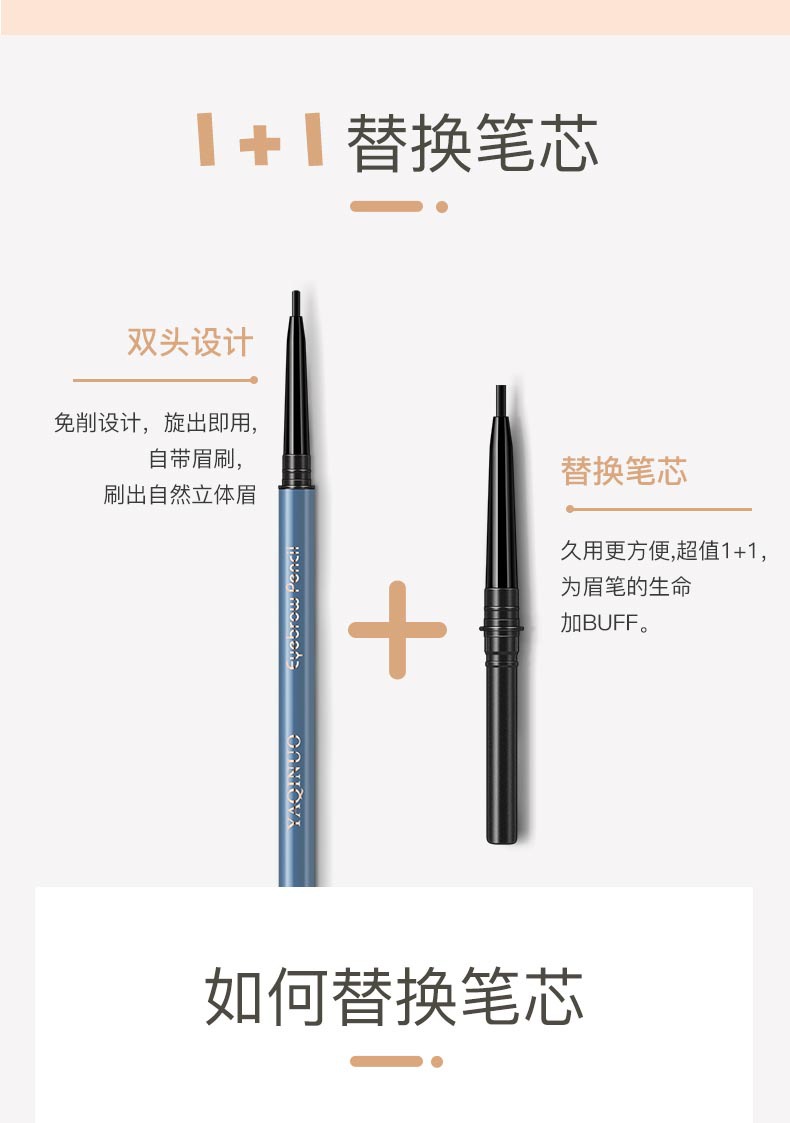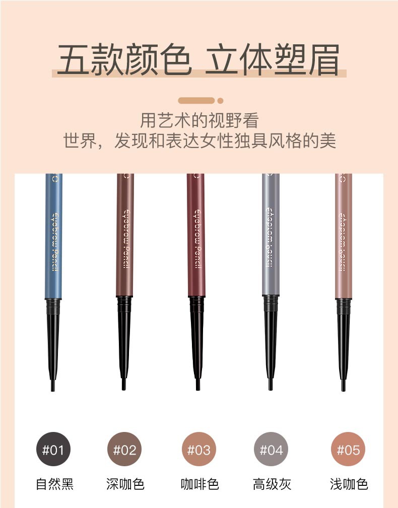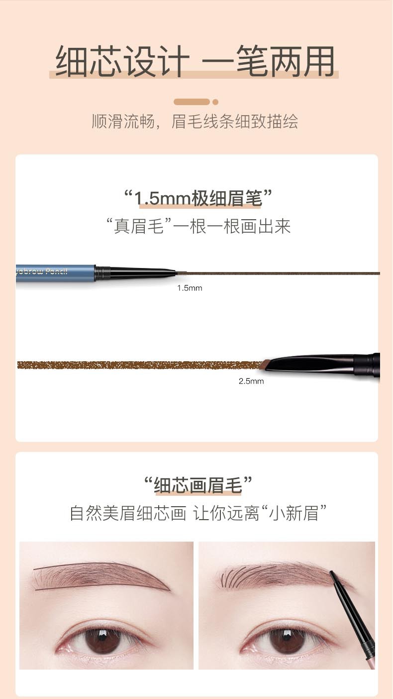 極細両頭アイブロウペンシル、防水、にじまない、色持ちが良い、落ちにくい、自然な眉、根元がきれいに描ける、眉画りの魔法のツール。