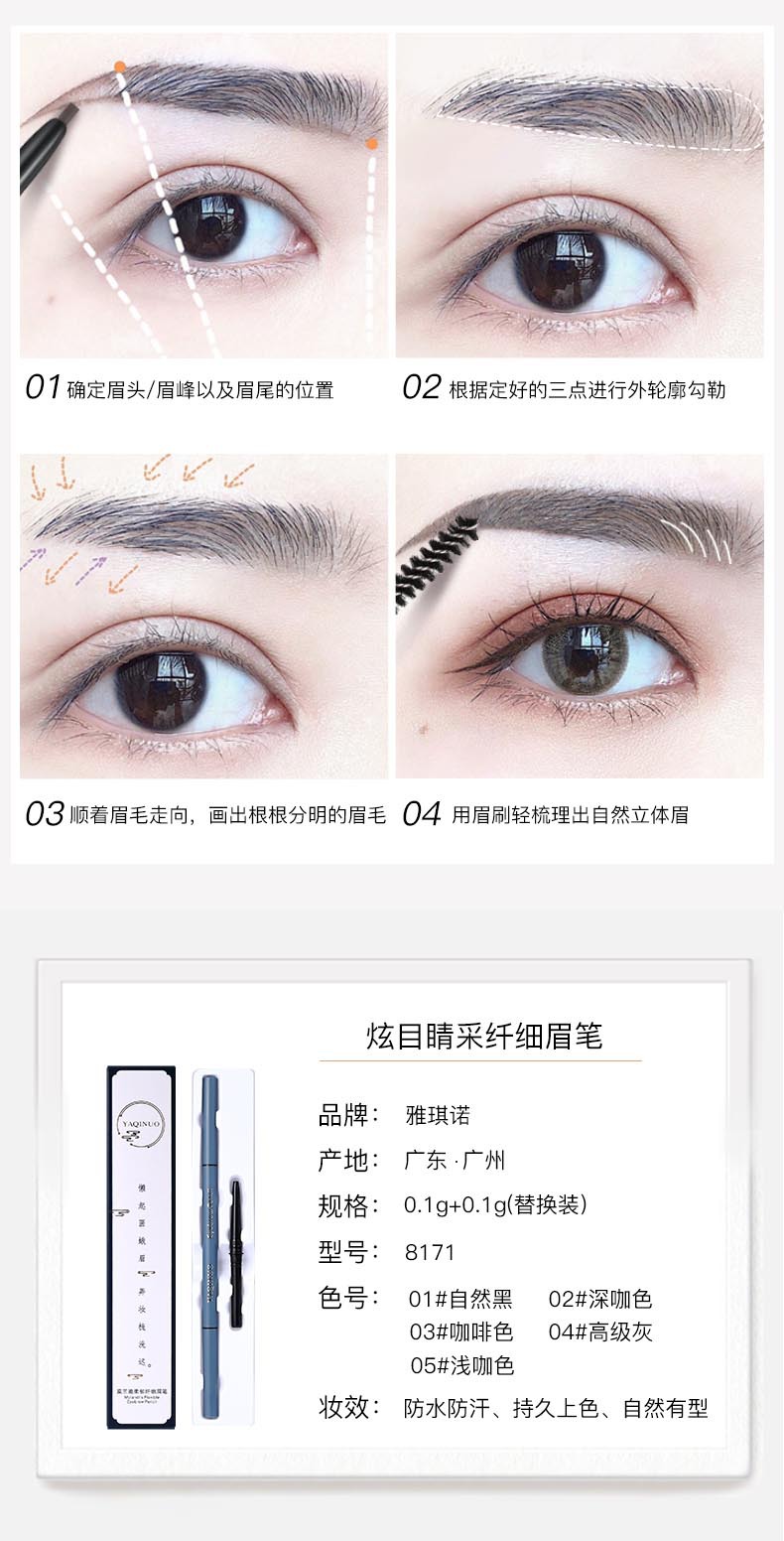 雅琪诺双頭極細眉筆超細頭防水汗が長く脱色しない眉粉霧眉初心者