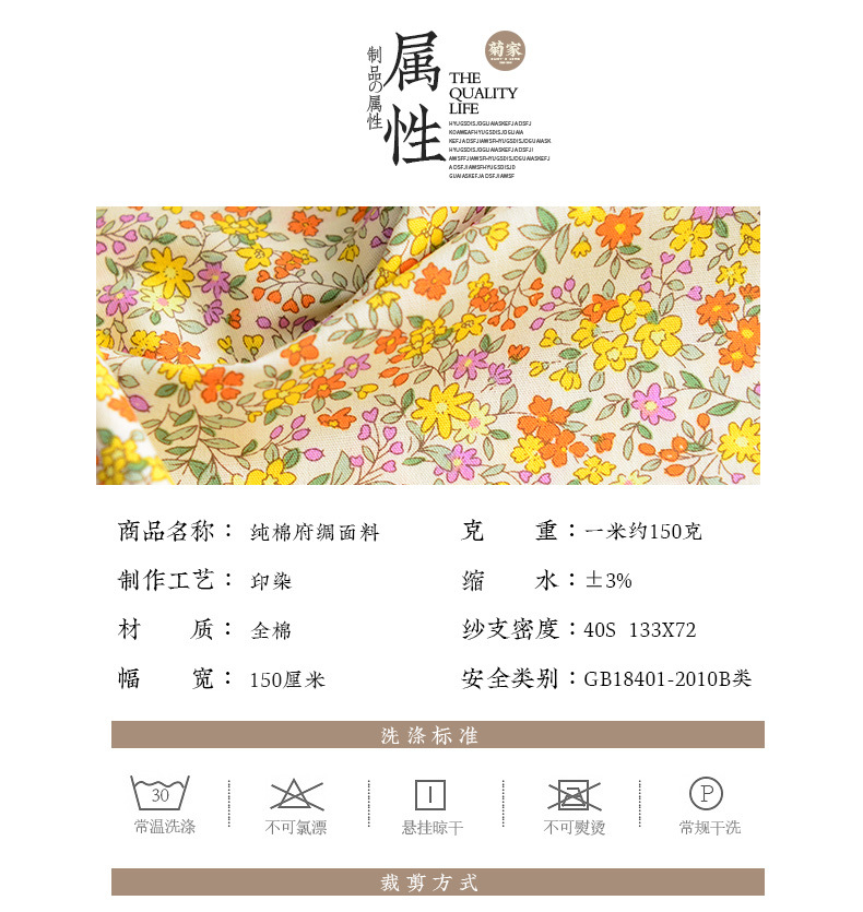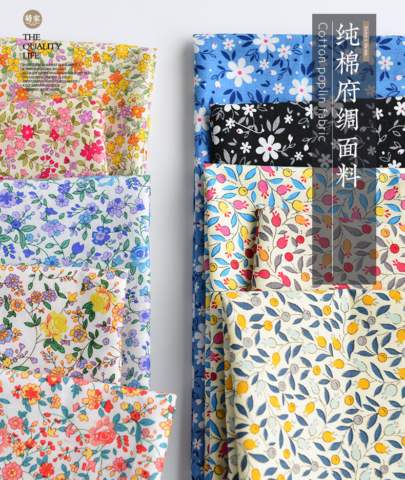 布地純綿手作りdiy服装スカートシャツ手作捺染綿生地ポプリン綿布田園砕花