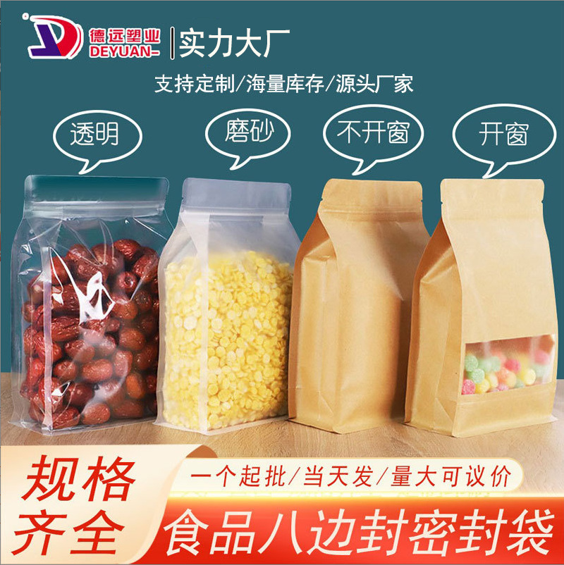 ナツメ八辺封袋開窓クラフト紙袋ナッツ食品包装袋フロストクラフト紙自封袋自立袋