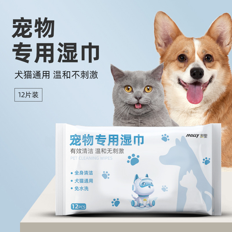 麦里ペットウェットティッシュ12枚入り、犬猫専用、体の一部の清掃用、洗い流さないクリーニングウェットティッシュ、卸売ケア