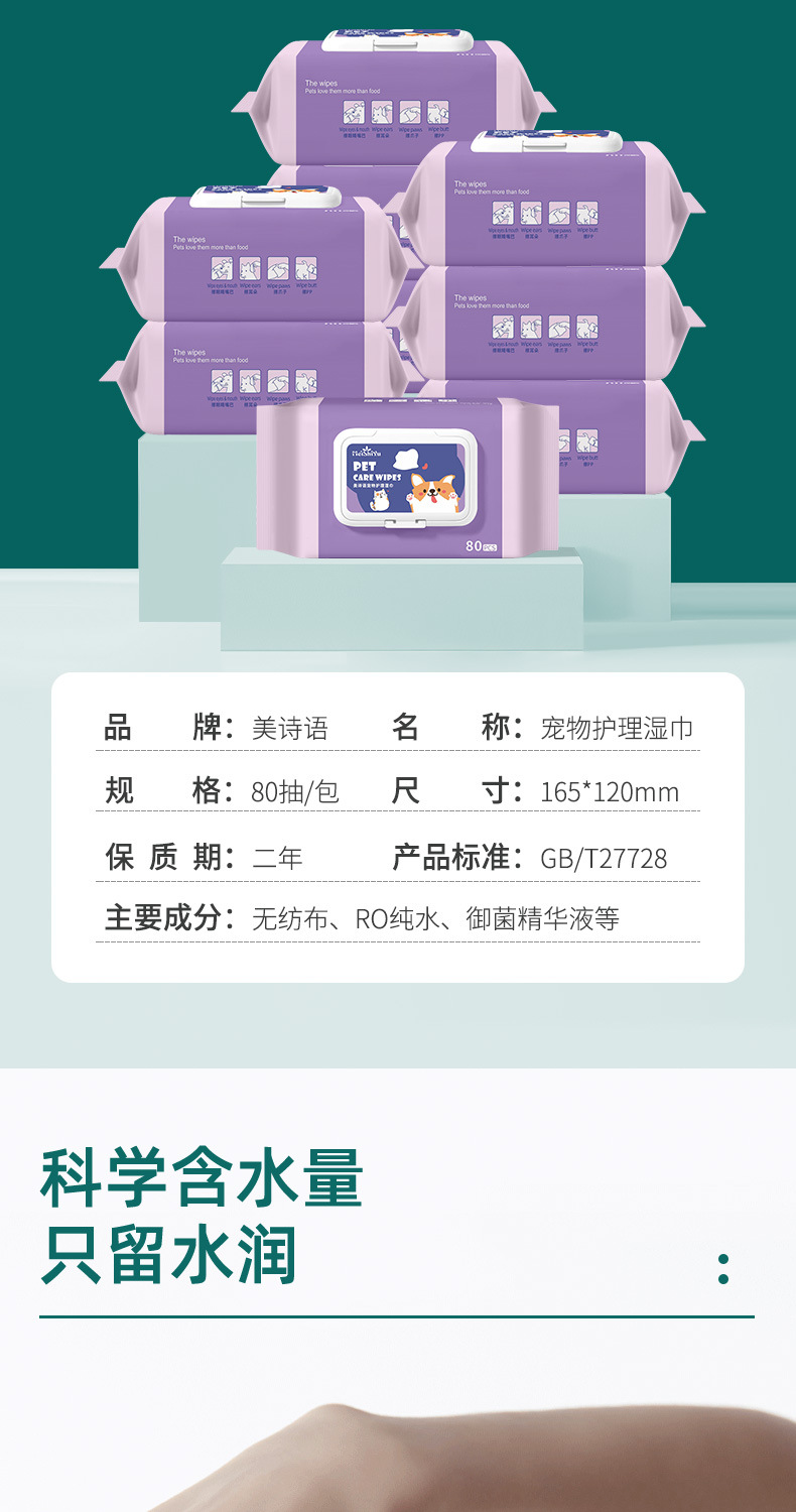 美詩語ペット用ウェットティッシュ80枚入り 猫犬用ボディ・耳・目洗浄衛生ウェットティッシュ卸売
