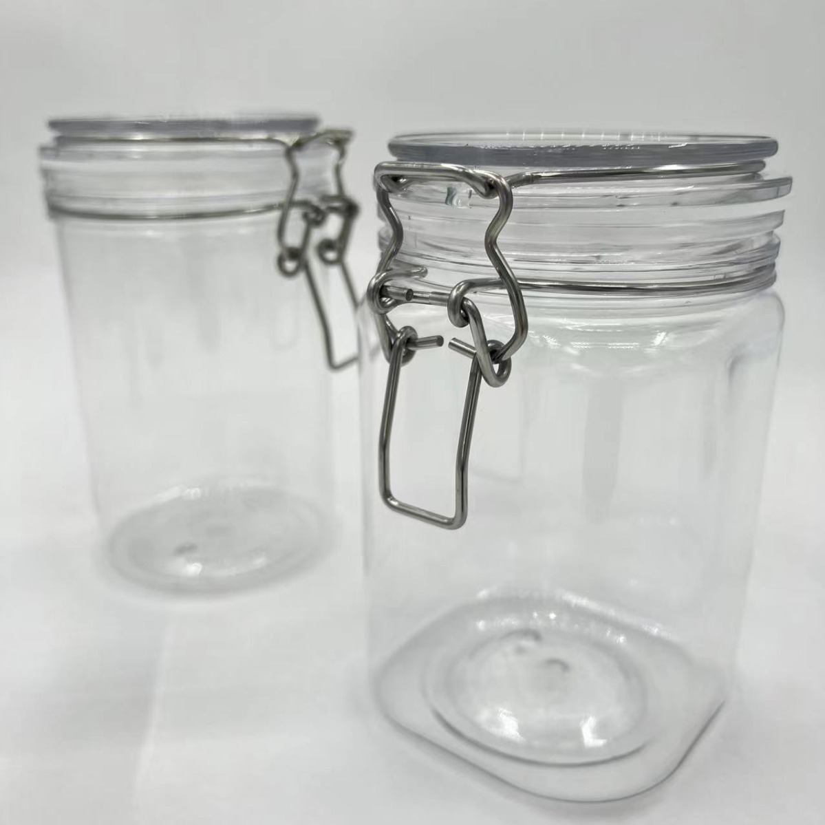 ホットタイプ800ml角型透明プラスチック密封缶ドライフルーツ茶葉貯蔵缶キッチン防湿食品収納瓶