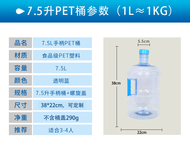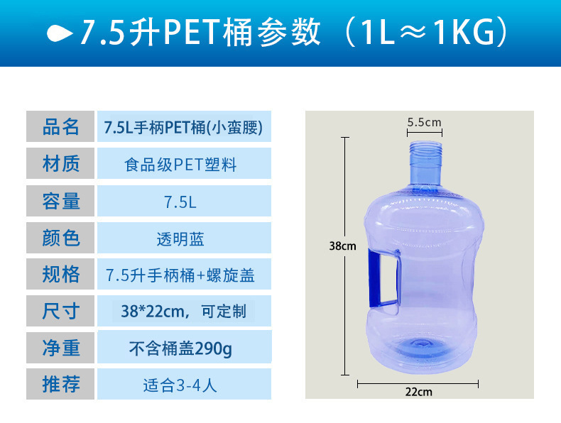 厂家直销7.5L/11L/7L水桶饮水机空桶带瓶盖食品级PET聚酯矿泉水桶