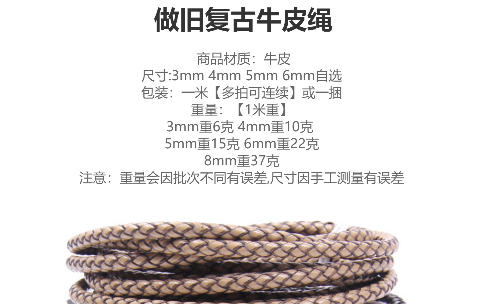 油辺牛革ロープdiy手編み丸皮ロープ手編みロープ吊り下げロープ太さのブレスレットネックレス材料