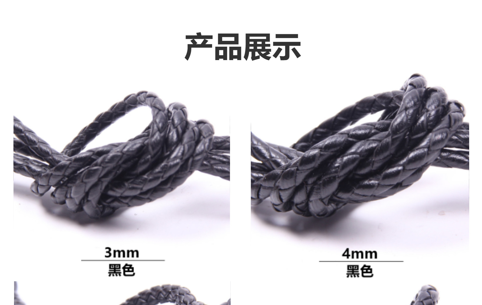 精密編み革紐牛革紐本革オイルサイド手編みチェーン黒手編みアクセサリー線材
