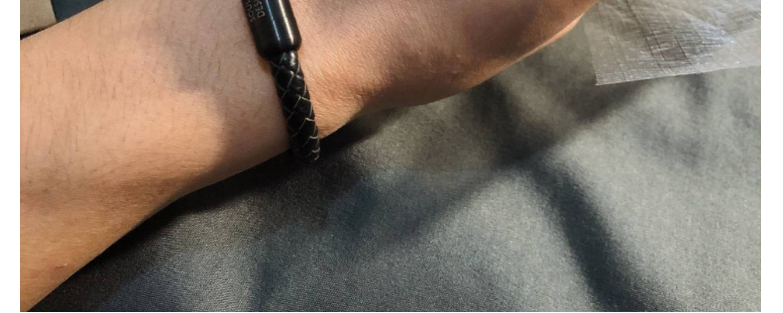 DIYブレスレットは革紐をまねています。