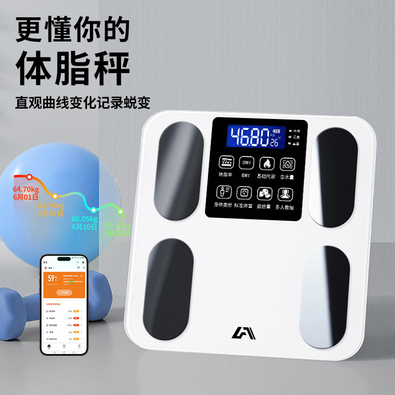 工場直発家庭用体脂肪秤寮小型電子秤充電人体測定データ知能体重秤重量