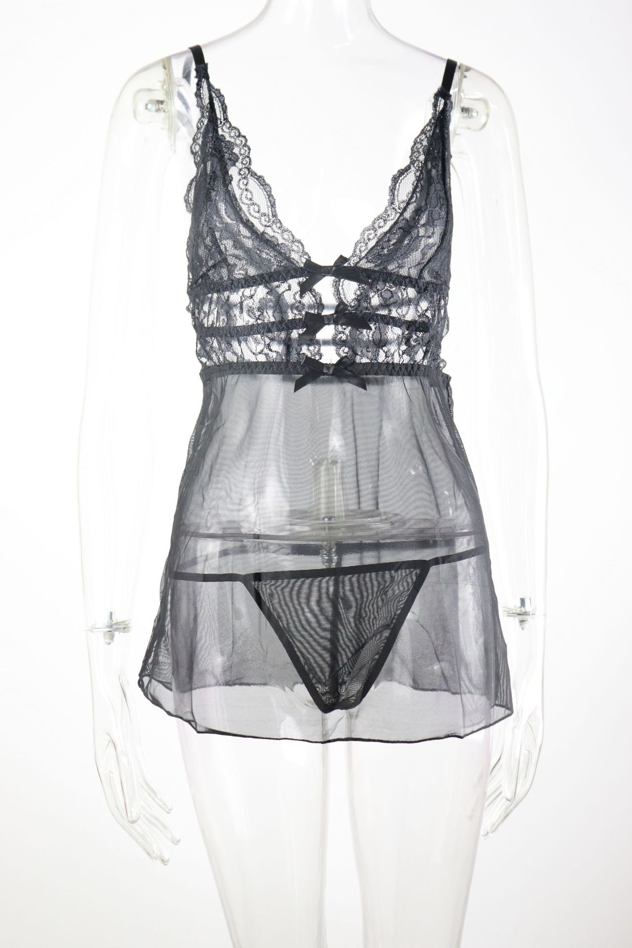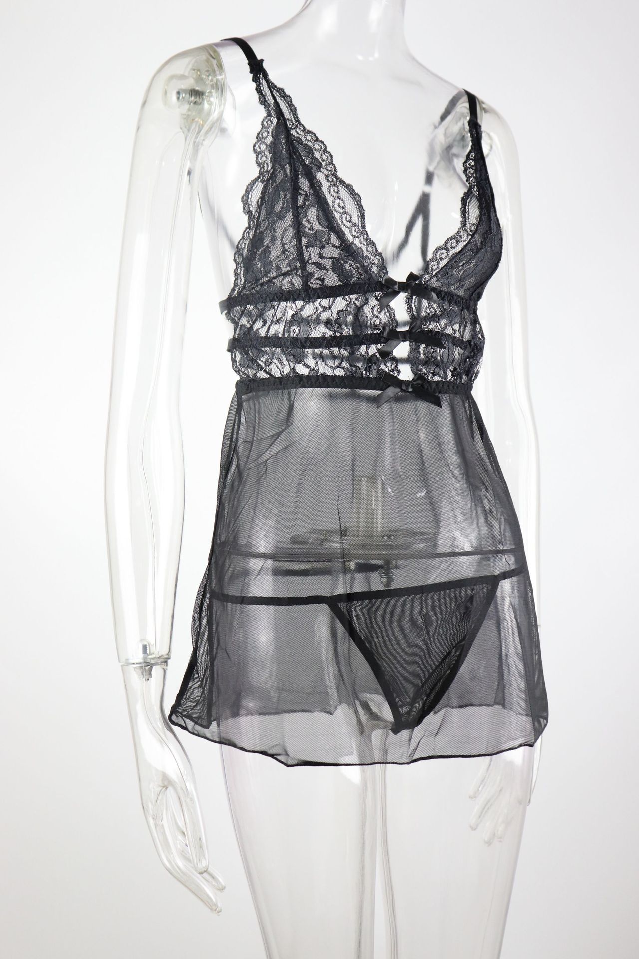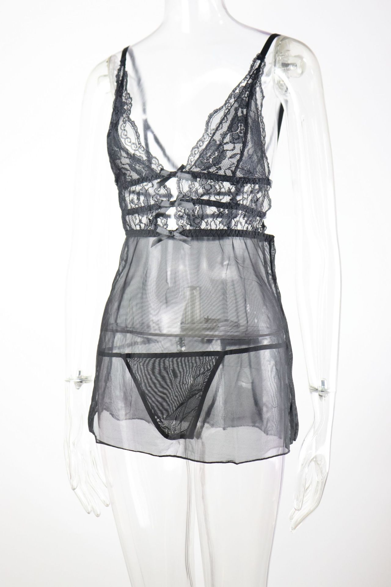 欧米のホットタイプの夏の女装のセクシーなパジャマレースの透視セクシーな下着のセクシーなオープンストラップワンピース