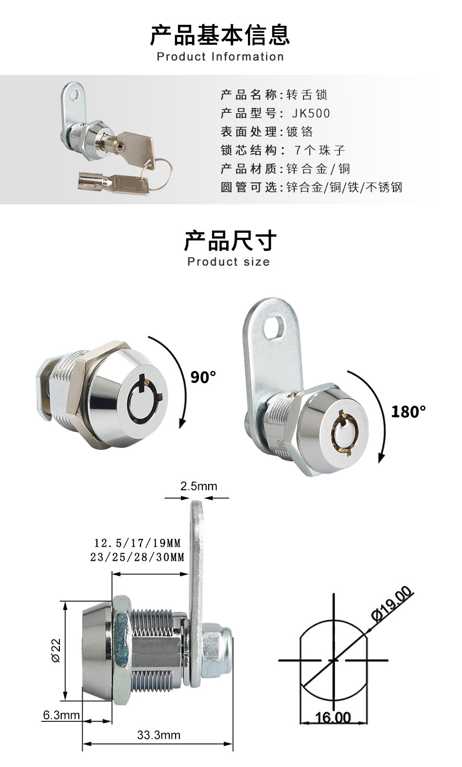 捷開ケースキャビネットロック三角ステンレスロックms705ゴミ箱円筒ロック配電箱ロック芯