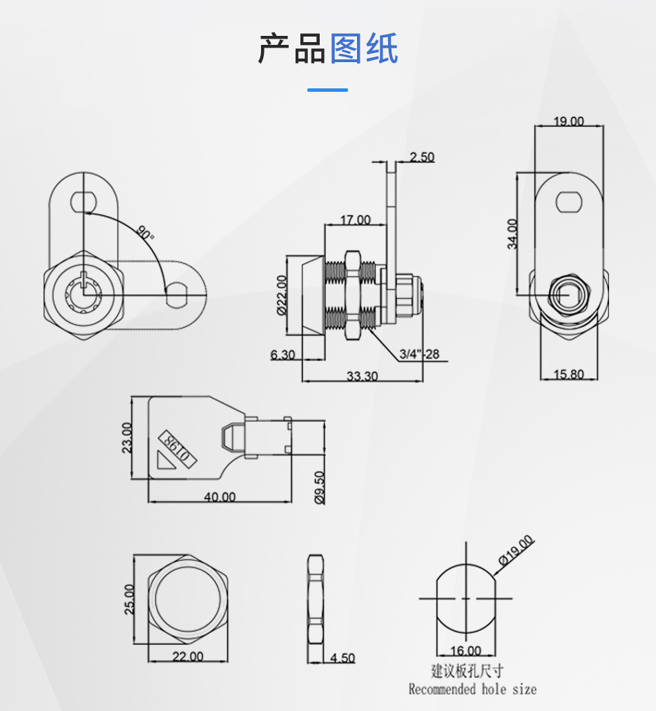 望通1506ファイルロック、鉄製キャビネットロック、ロッカー、ファイルキャビネット、アーカイブキャビネット、収納キャビネット、ハンドルロック、キャビネットドアロック