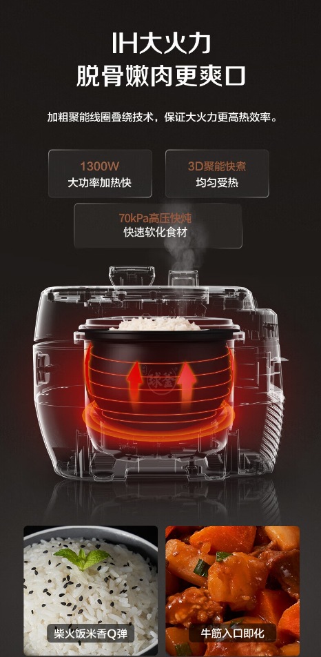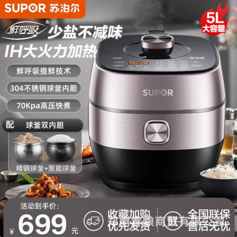 苏泊尔电压力锅家用预约多功能5L大容量IH猛火高压饭锅双胆球釜