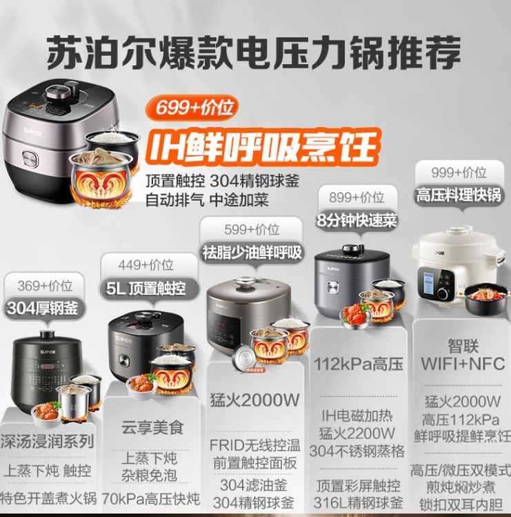 苏泊尔电压力锅鲜呼吸家用IH猛火高压速烹5L大量智能多功能电压锅