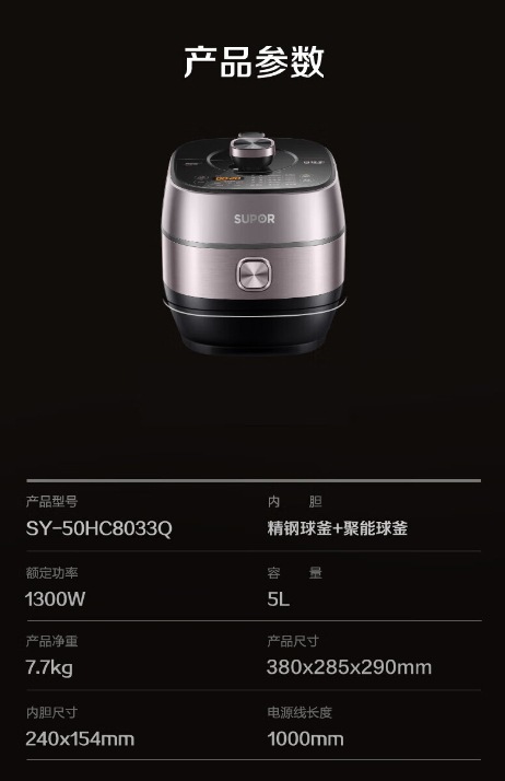 蘇泊爾SY-50FH33Q電気圧力鍋一なべ双球釜5lih電磁加熱炊飯器