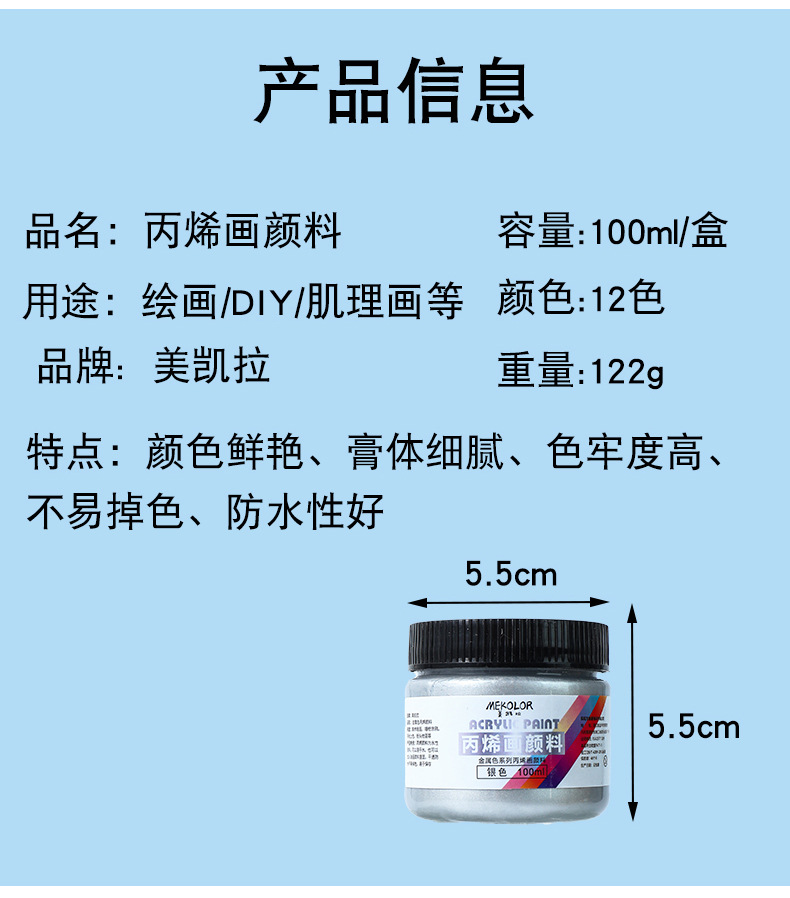 珠光丙烯颜料金色银色金属色100ml珠光DIY防水丙烯绘画颜料工厂直