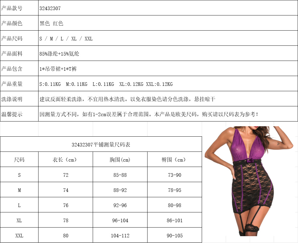 ヨーロッパ駅のアマゾンの対外貿易の商品源欧米のレースの透視の趣味の下着の前でフォークのセクシーなサスペンダーのスカートの現物を開けます。