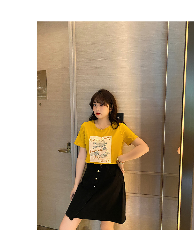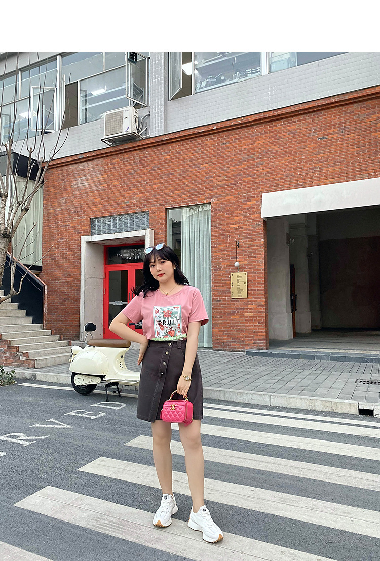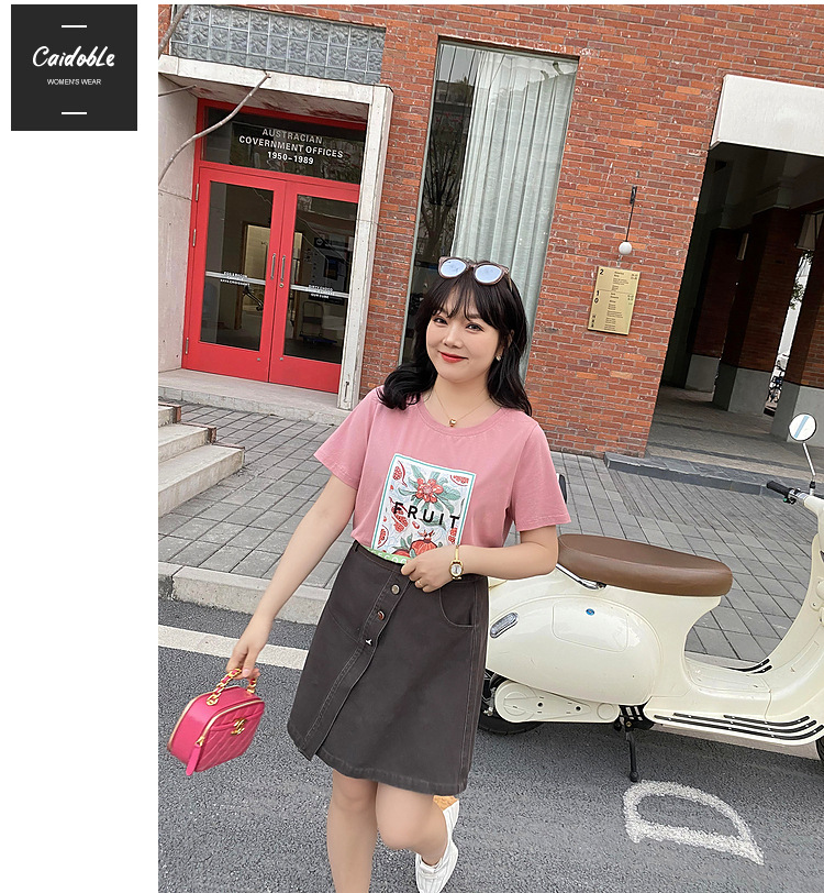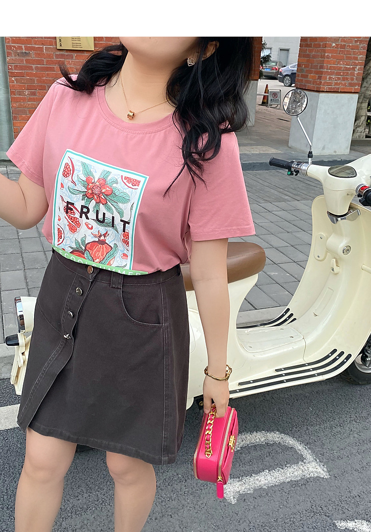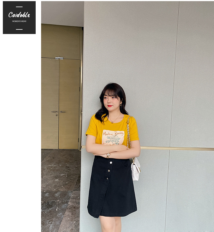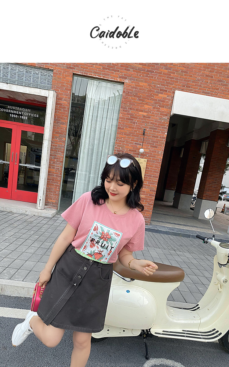 Caiduobao プラスサイズの女性のファット mm2025 夏の新しいラウンドネックルーズ漫画プリント Tシャツ EXZ5518