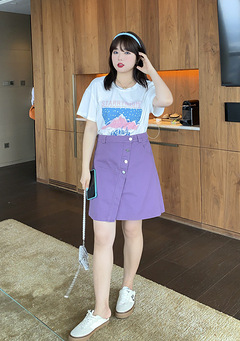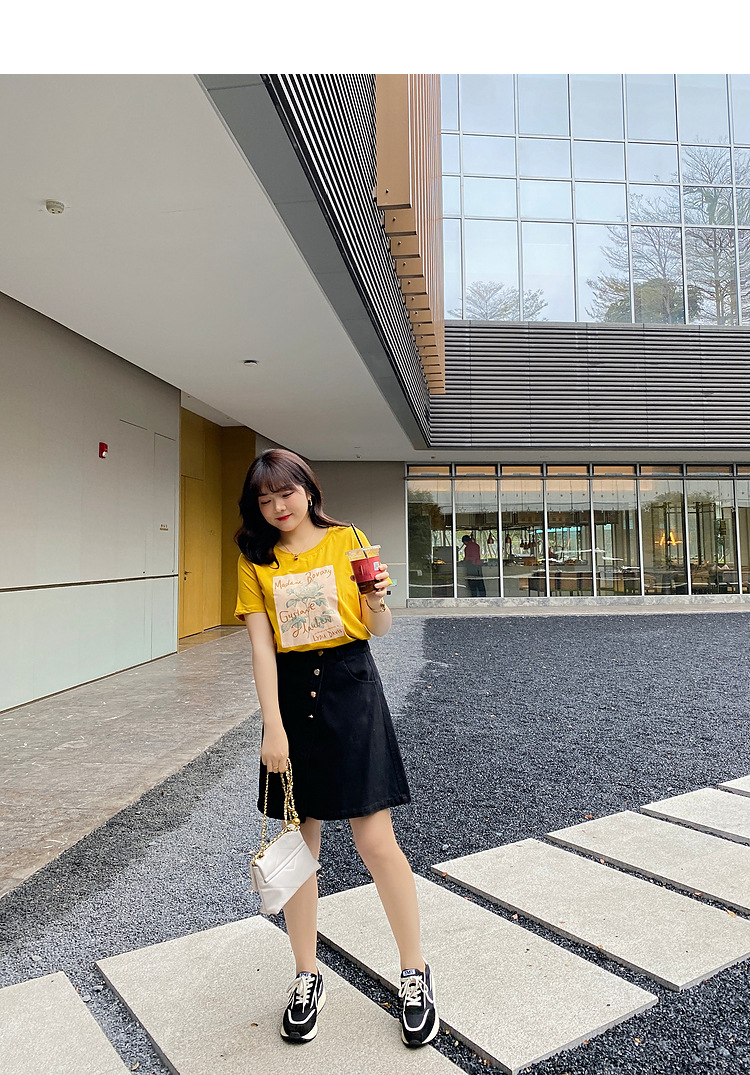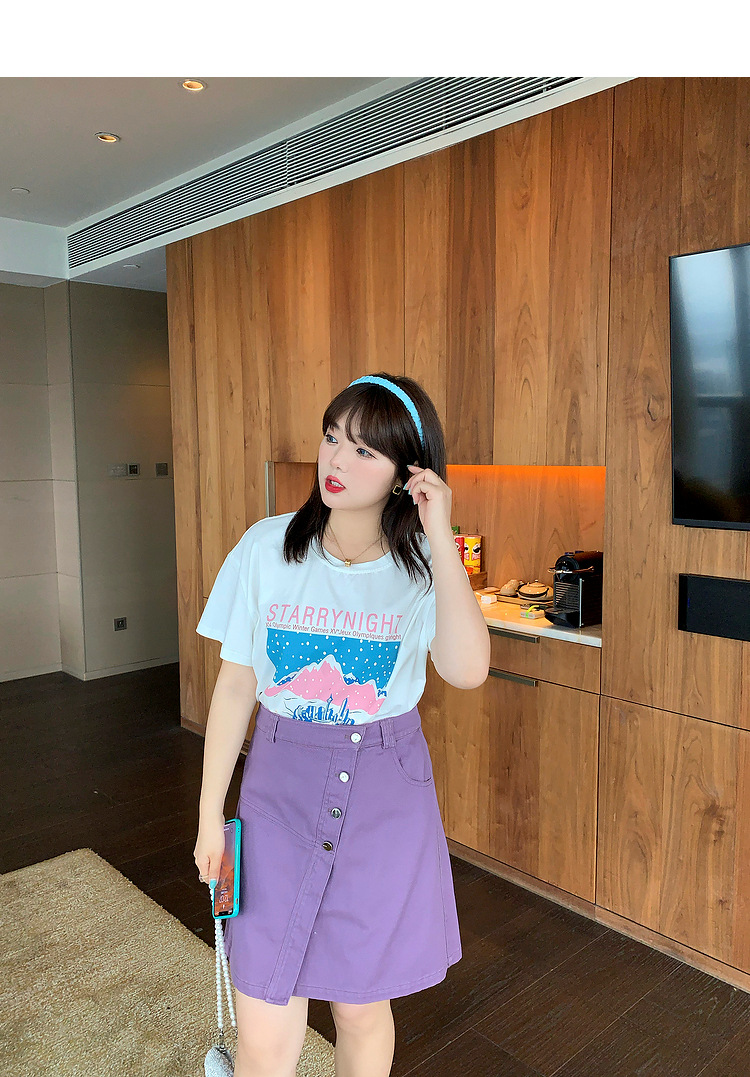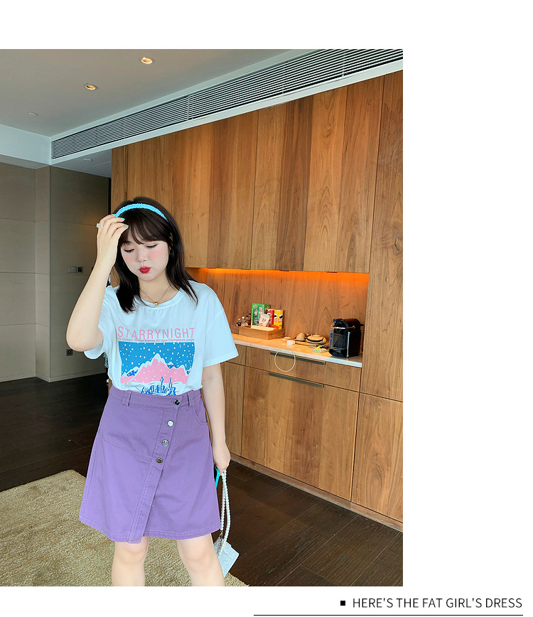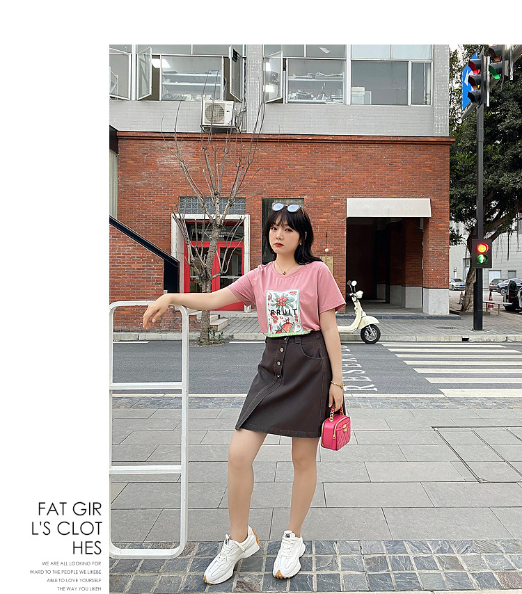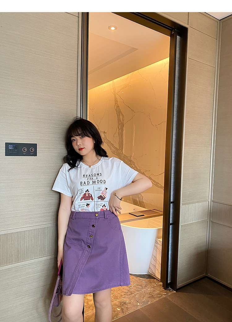 Caiduobao プラスサイズの女性のファット mm2025 夏の新しいラウンドネックルーズ漫画プリント Tシャツ EXZ5518