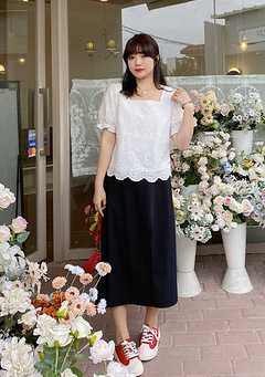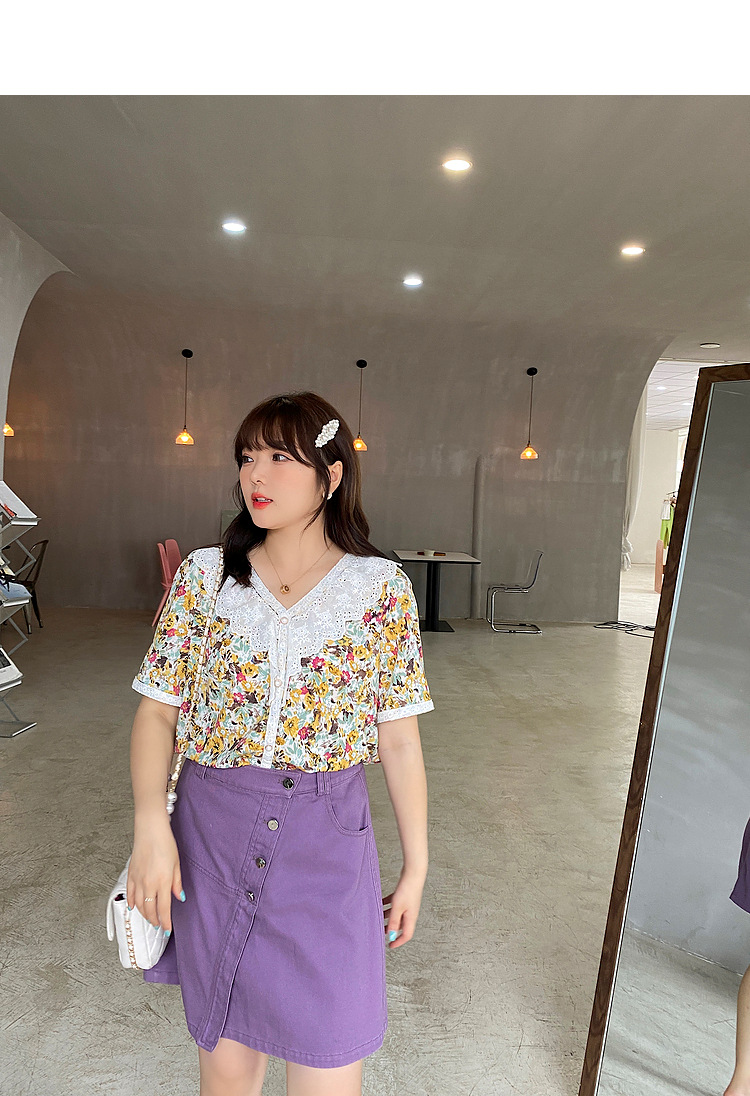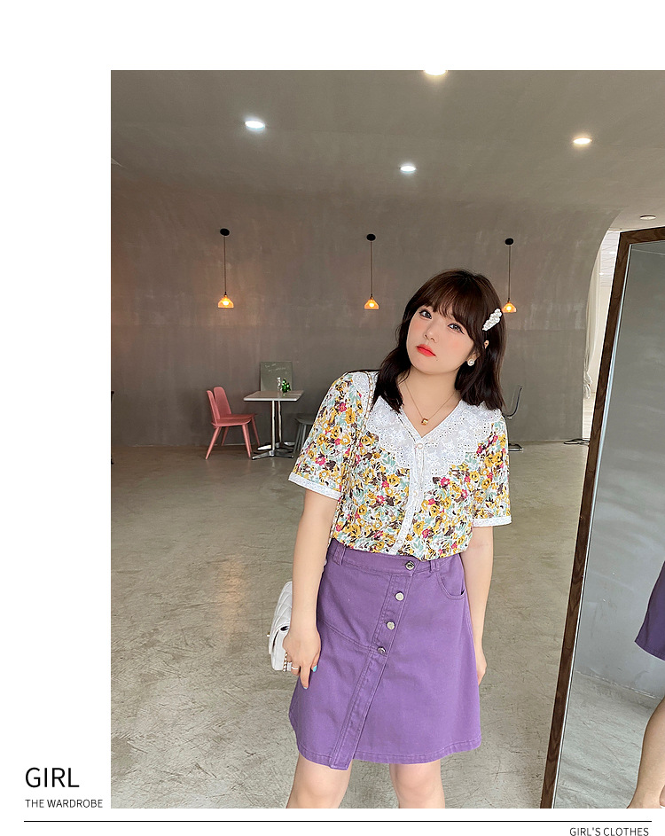 Caiduobao プラスサイズの女性のファット mm2025 夏の新しいスタイルのピーチハート襟かぎ針編み中空レースシャツ EXA5551