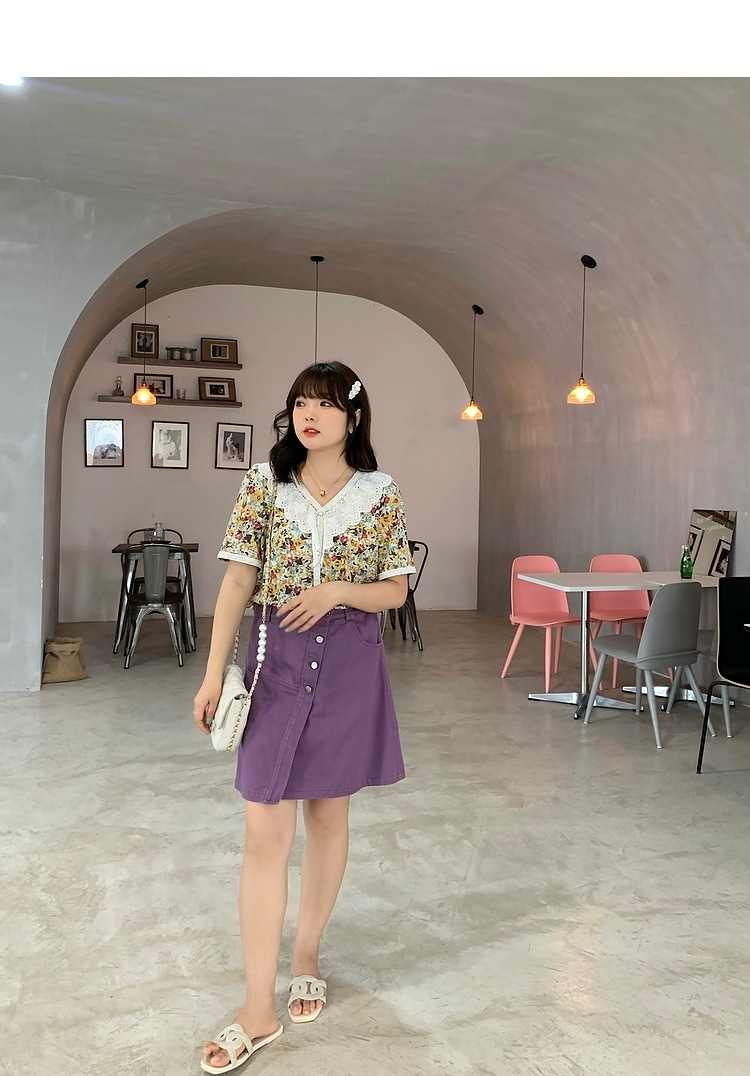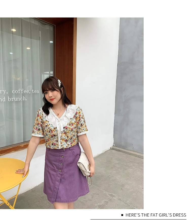 Caiduobao プラスサイズの女性のファット mm2025 夏の新しいラウンドネックレース花柄ドレス EXQ5556