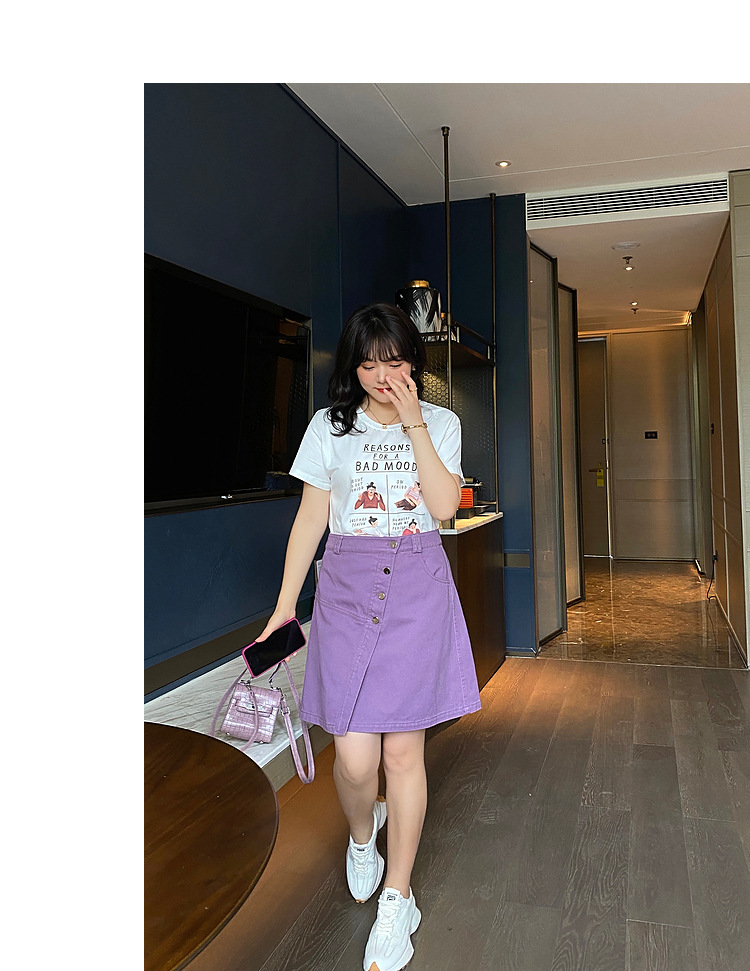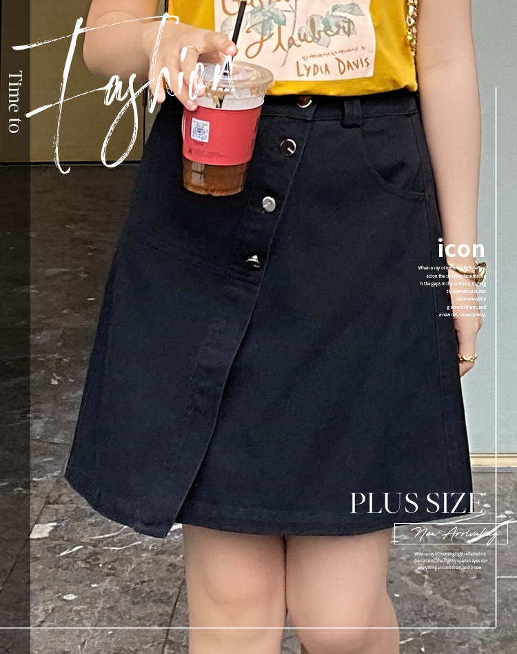 ジェーンウェイの大きいサイズの女装の太った妹の2021年の夏服の新型のa字の不規則なデニムの半身のスカートのbq0222