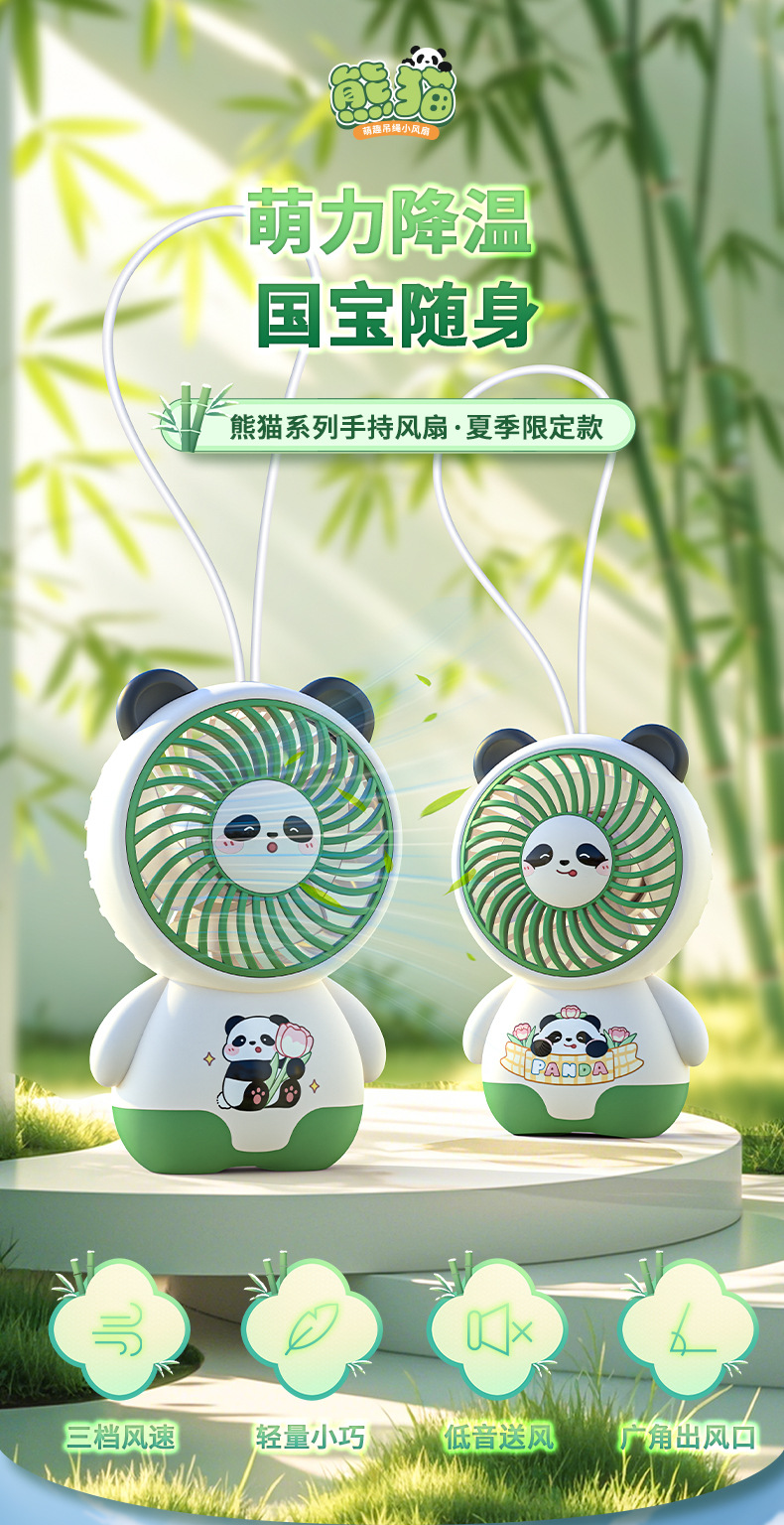 パンダフルーツストラップハンドヘルドミニファン USB 充電ポータブル漫画学生デスクトップファンロゴ