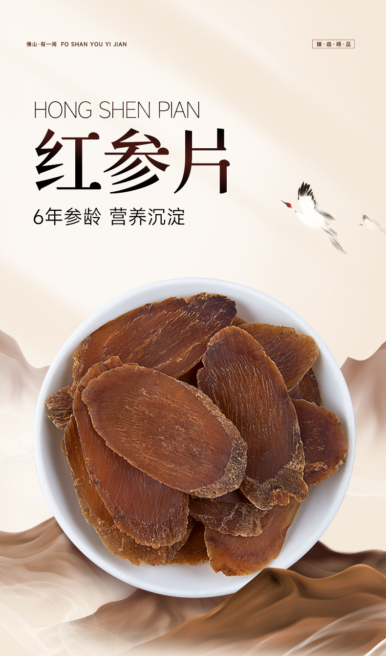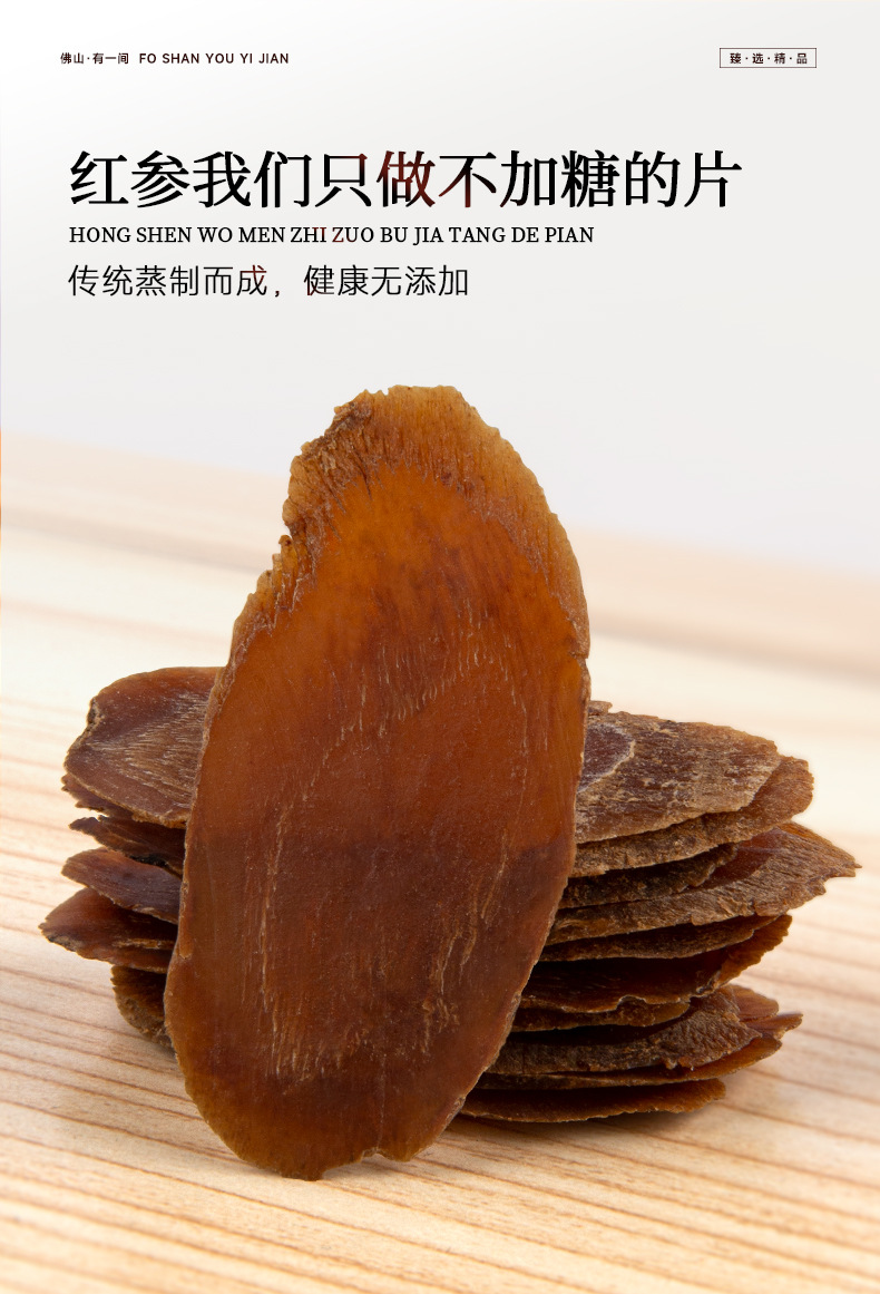 長白山紅参片8年根人参片東北人参紅参片中片無糖紅参片