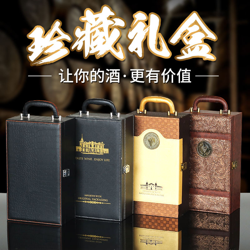 高級ワインボックス包装2本入りワイン付き包装箱皮箱現物ワイン皮箱