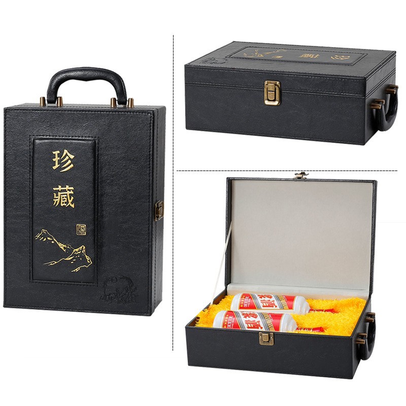 白酒皮箱皮質包装箱ギフトボックス酒箱ダブル2本現物ロゴ5酒壇皮箱白酒箱