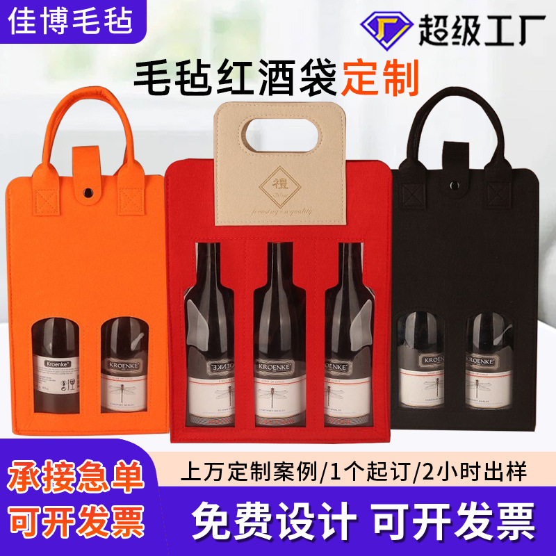 新款毛毡酒袋礼品袋双支单支葡萄酒手提袋红酒包装手拎礼盒高端