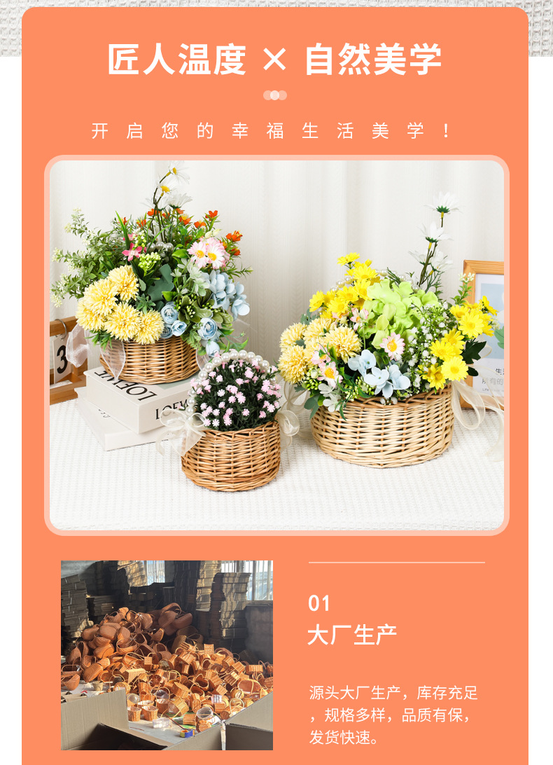 新しいインターネット有名人の装飾ポータブルフラワーバスケット包装花フラワーバスケット手作り籐フラワーアレンジメントギフトわら木製チップ