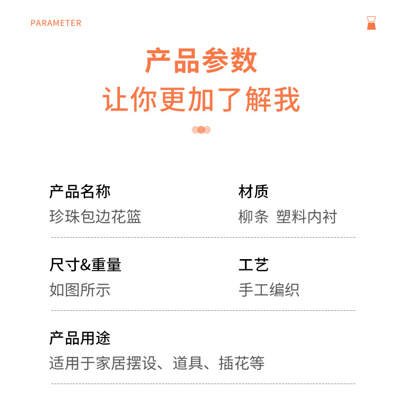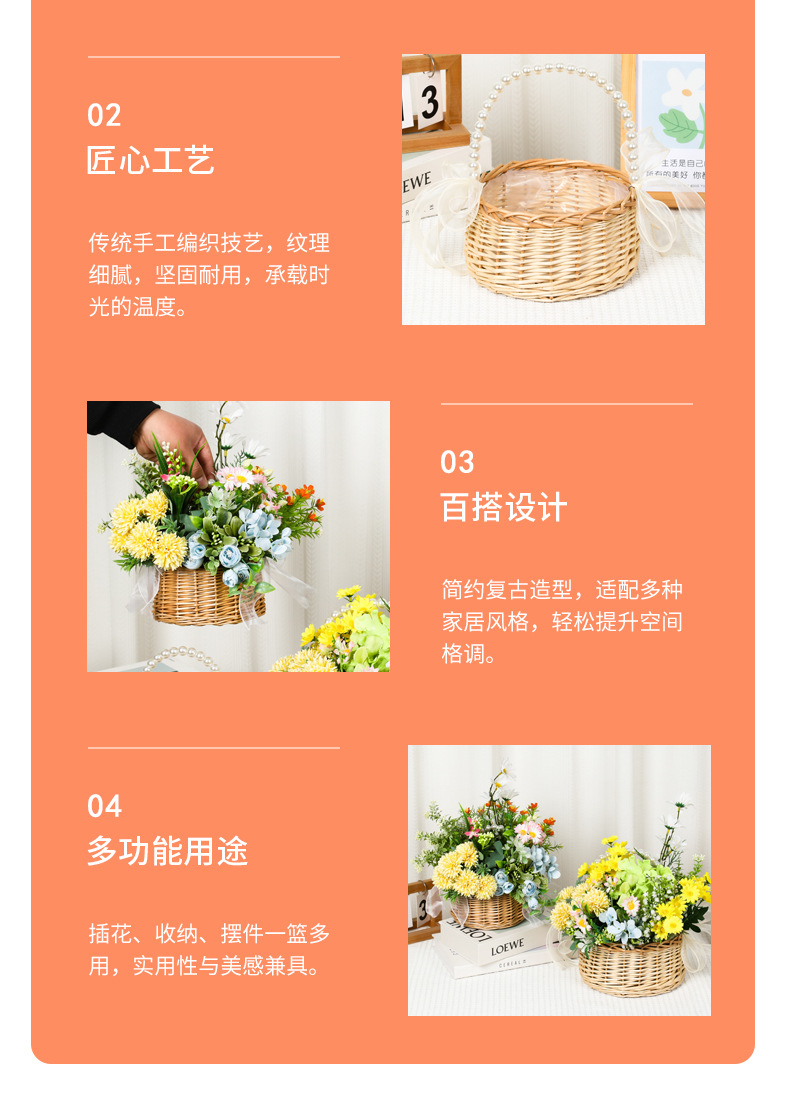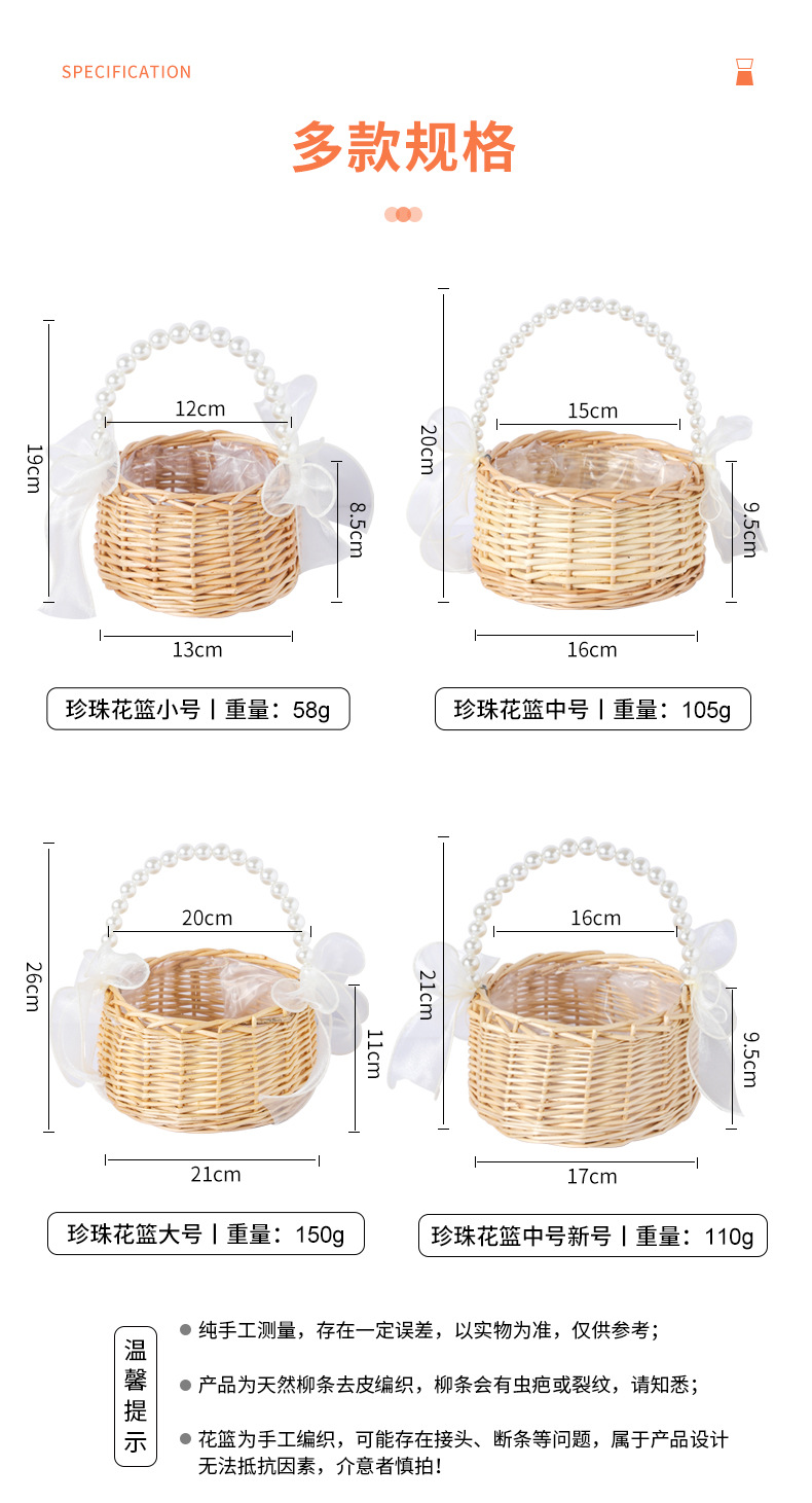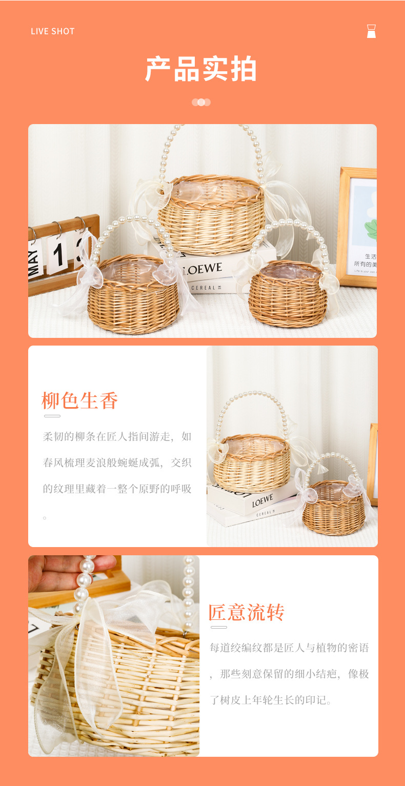 跨境藤编伴手礼手提花篮手工编织珍珠把手收纳篮草编柳编筐花篮子