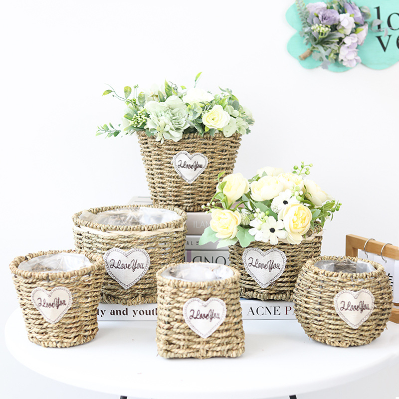 草編みの植木鉢、手編みの花かご、籐編みの緑の植物、多肉植物の装飾収納かご、柳編の草編みの植木鉢、持ち運び用かご