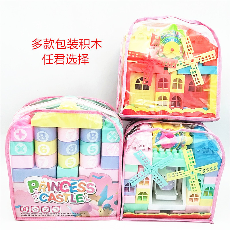 工場価格のリュックサックの積み木のプラスチックは積み木の子供のかばんのおもちゃの数字の大きい風車の袋の積み木の多種類を挿し込みます。