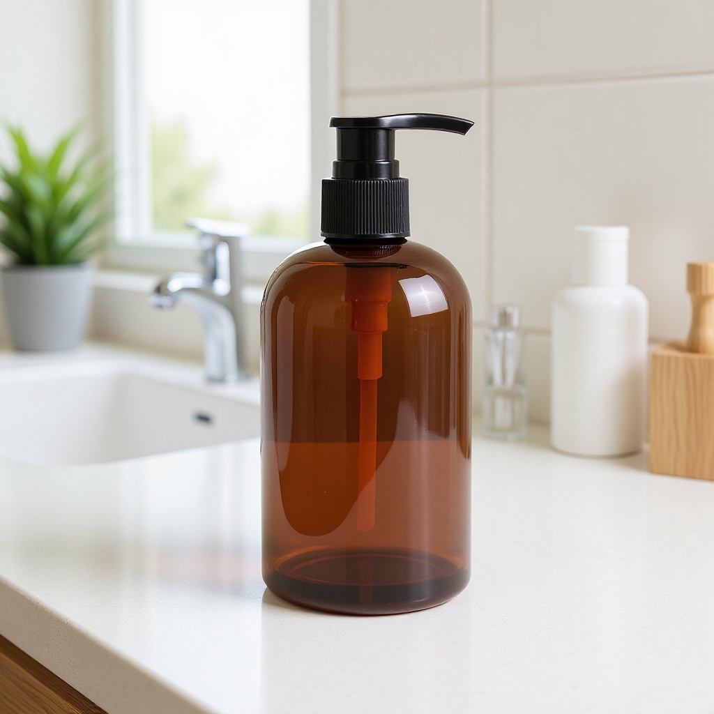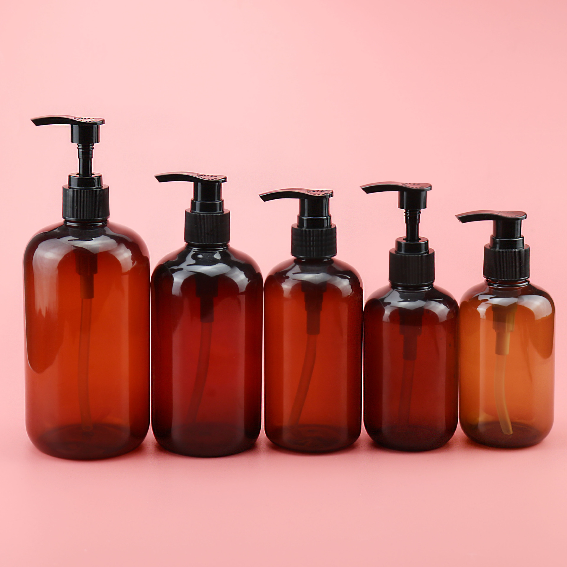 200ml 250ml 300ml 350ml 500mlの丸い肩の茶色の瓶に全プラスチックの螺旋ポンプの手洗い液を配合して瓶を分けます。
