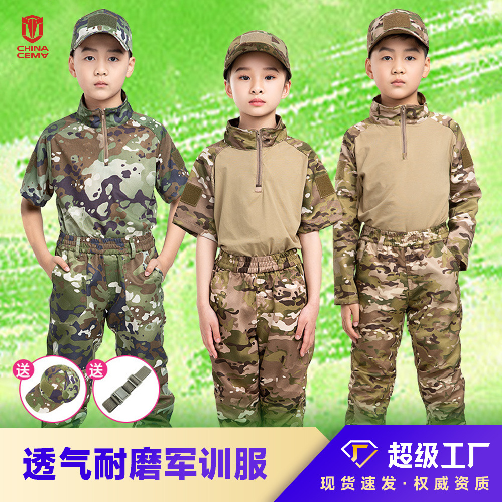 子供用迷彩服セット 男の子 夏用 タクティカルフロッグスーツ 学生 幼稚園 夏キャンプ 軍事訓練服 卸売 半袖