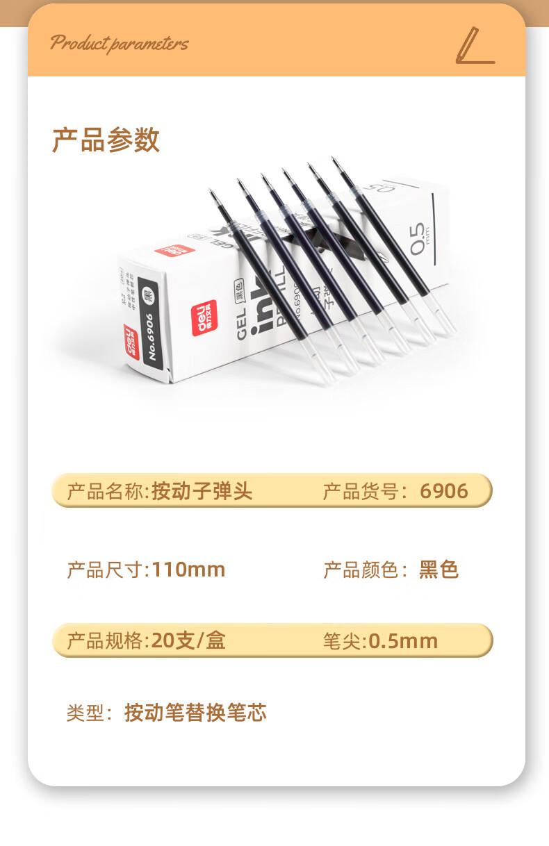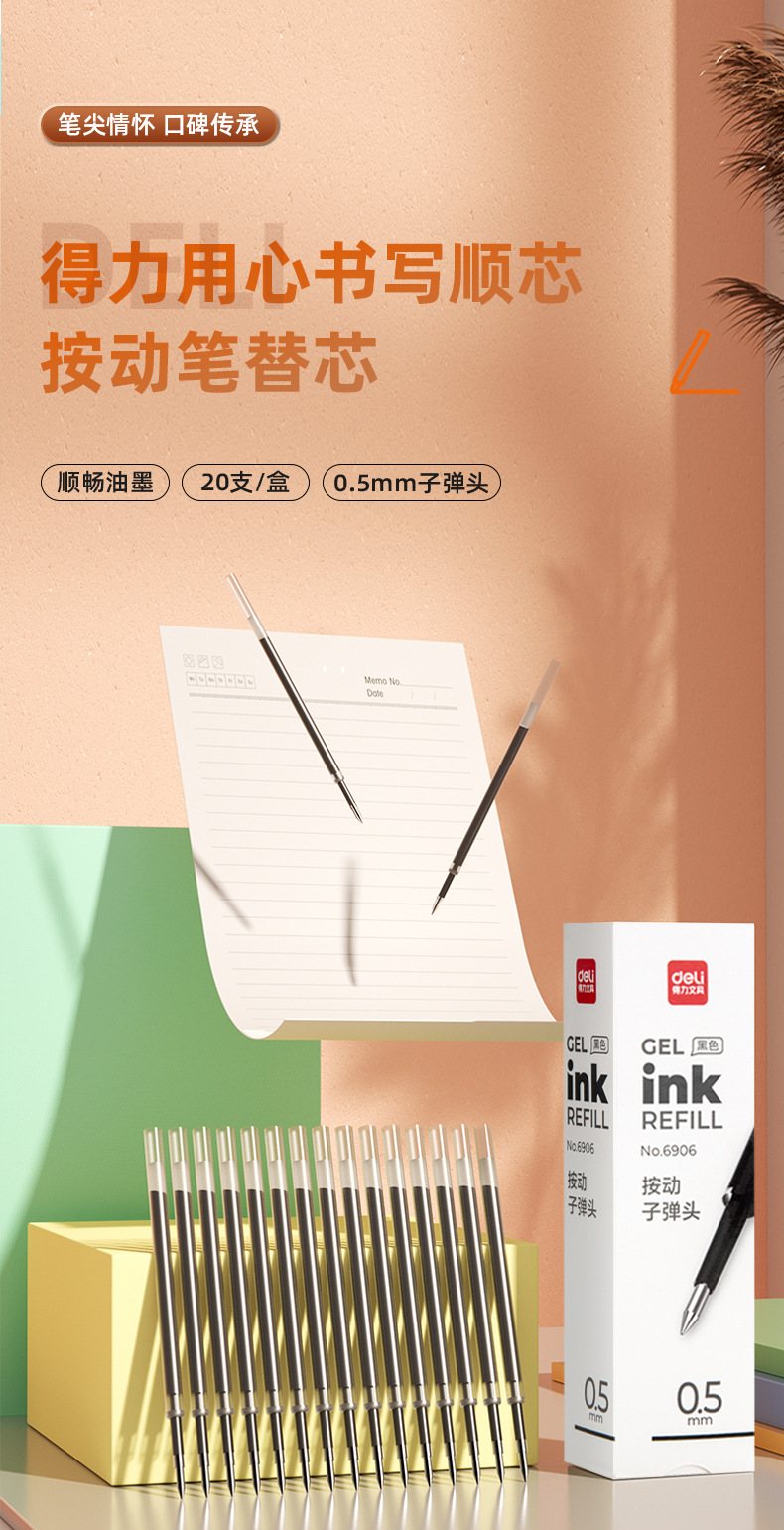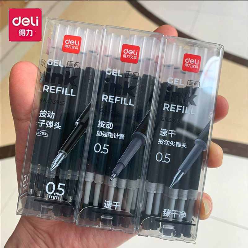 得力按动中性笔芯替芯墨蓝黑签字笔0.5子弹头速干大容量笔芯批发