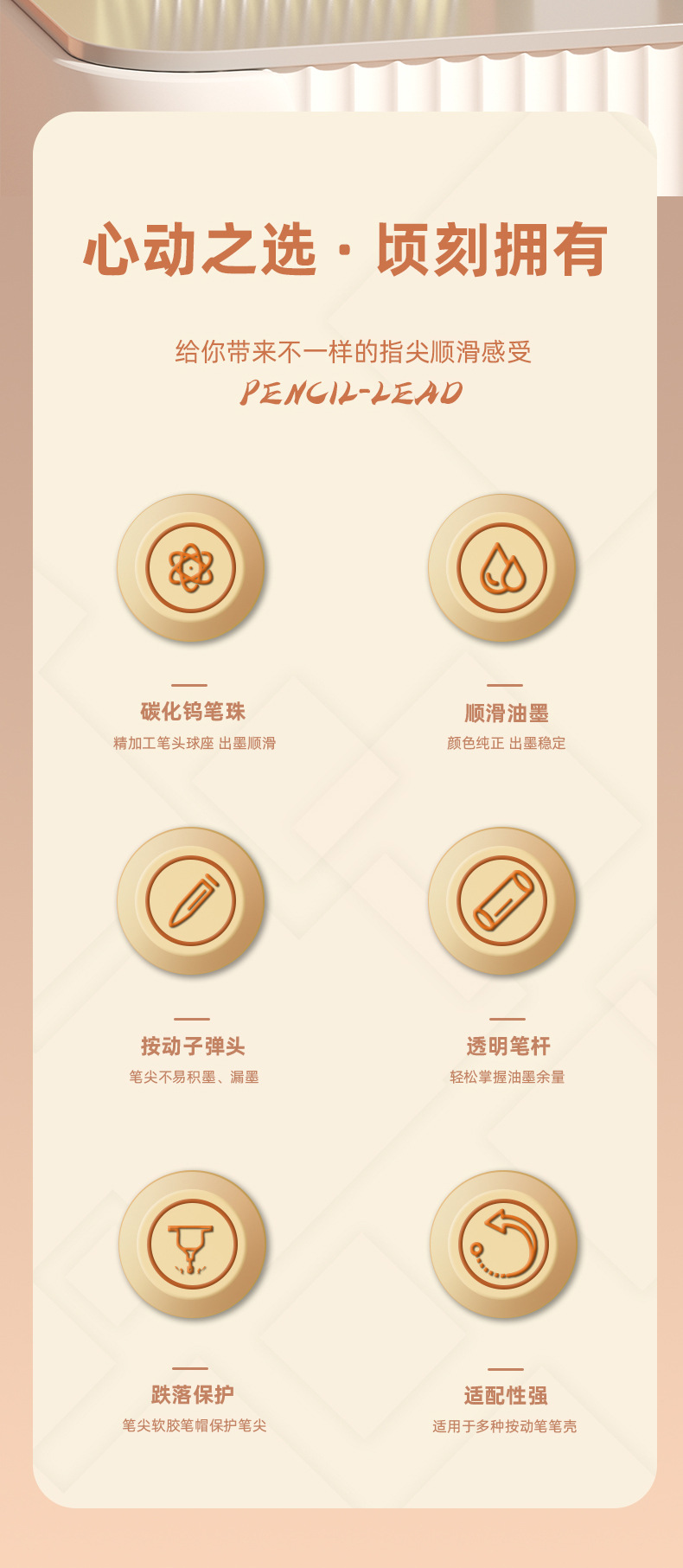 得力stヘッドはペンの芯を押します。