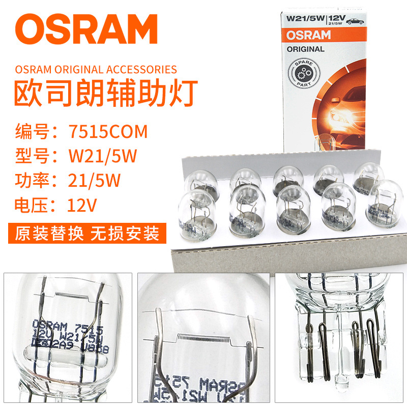 欧司朗w21/5wブレーキ電球t20ダブルワイヤブレーキ電球7515ミニランプ12vテールランプ自動車電球
