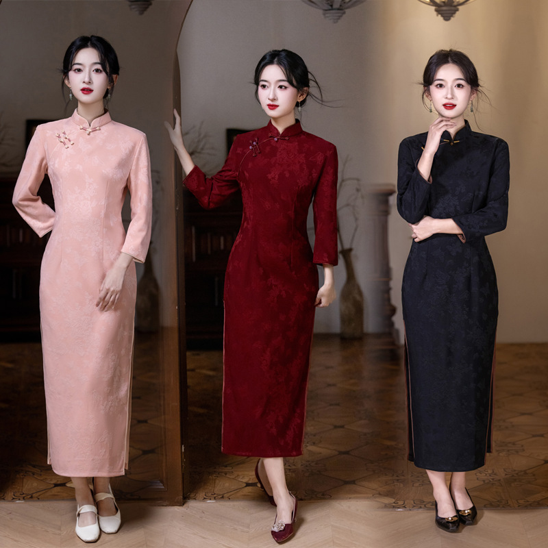 2025秋冬新款国风改良提花绣旗袍新中式大码长款婚宴礼演出代批发