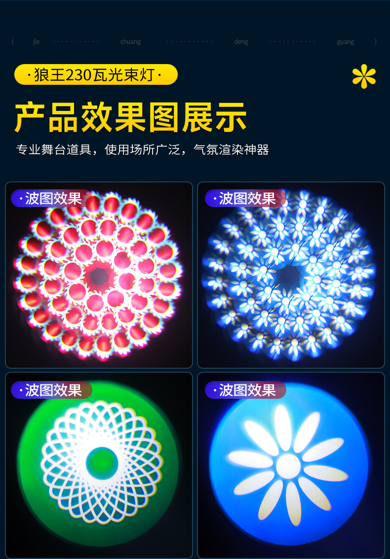 源头工厂光束灯舞台摇头图案旋转灯婚庆直播宴会厅演出酒吧包房灯