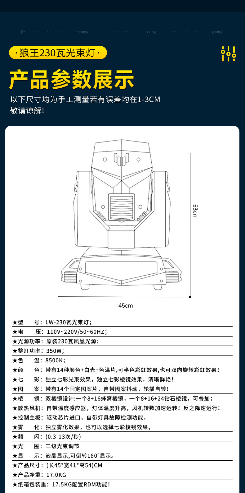 仕様 狼王230ワットビームライト