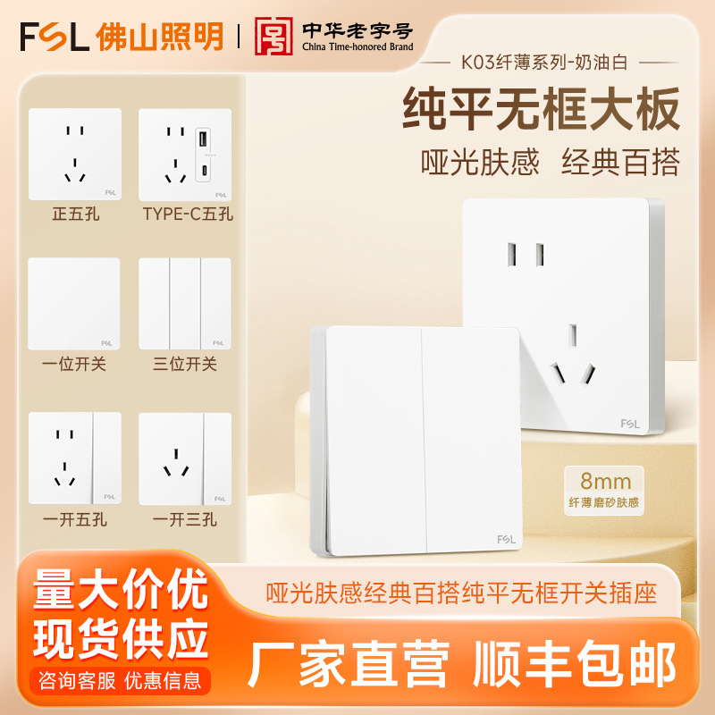 FSL 佛山照明 k03 スイッチソケットホーム 86 タイプ隠し壁パネル 2 または 3 プラグ 5 穴ソケット