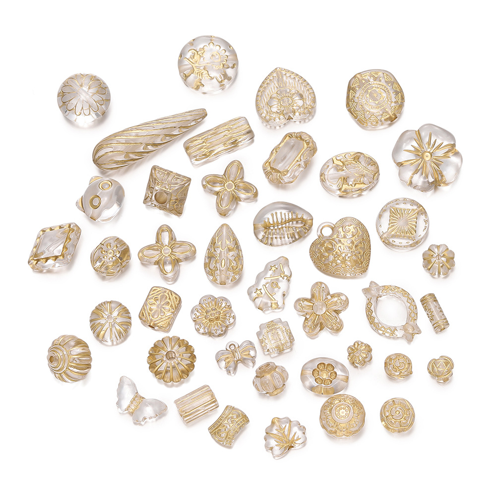 アクリル箔押し異形珠多デザイン描金異形散珠diyイヤリングネックレス携帯チェーンアクセサリー材料