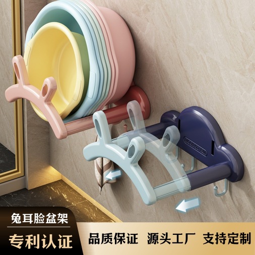 卸売-うさぎ耳伸縮式洗面器スタンド 穴あけ不要壁掛け式浴室収納ラック 調整可能なプラスチック製収納ラック