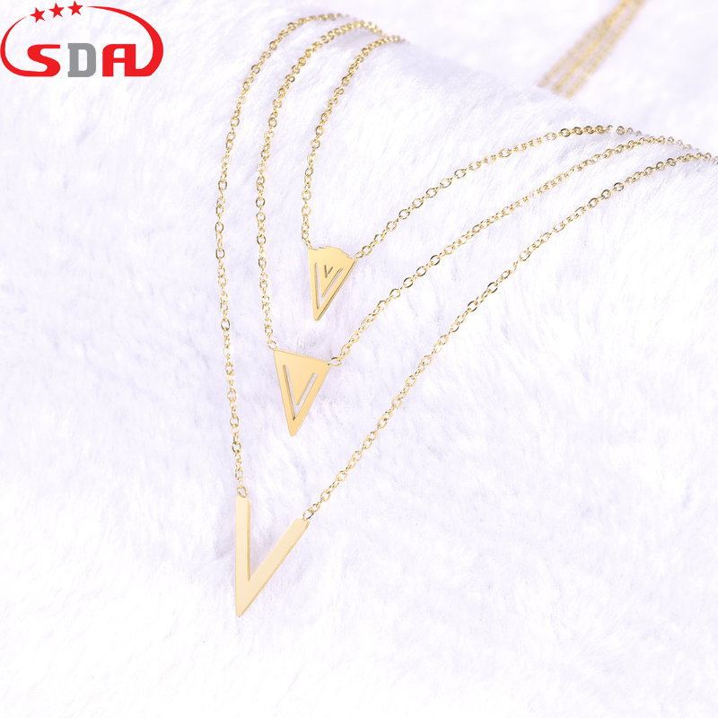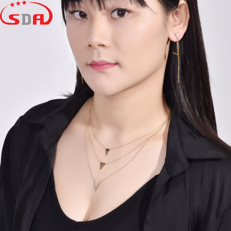 Sda欧米ファッションネックレスレディース多層個性的なネックレス三角形v字金属棒ペンダント三層ネックレス