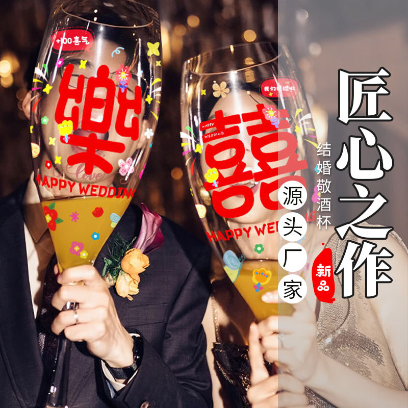 结婚敬酒杯超大diy新人订婚敬茶杯大杯子高脚珍珠奶茶大号红酒杯